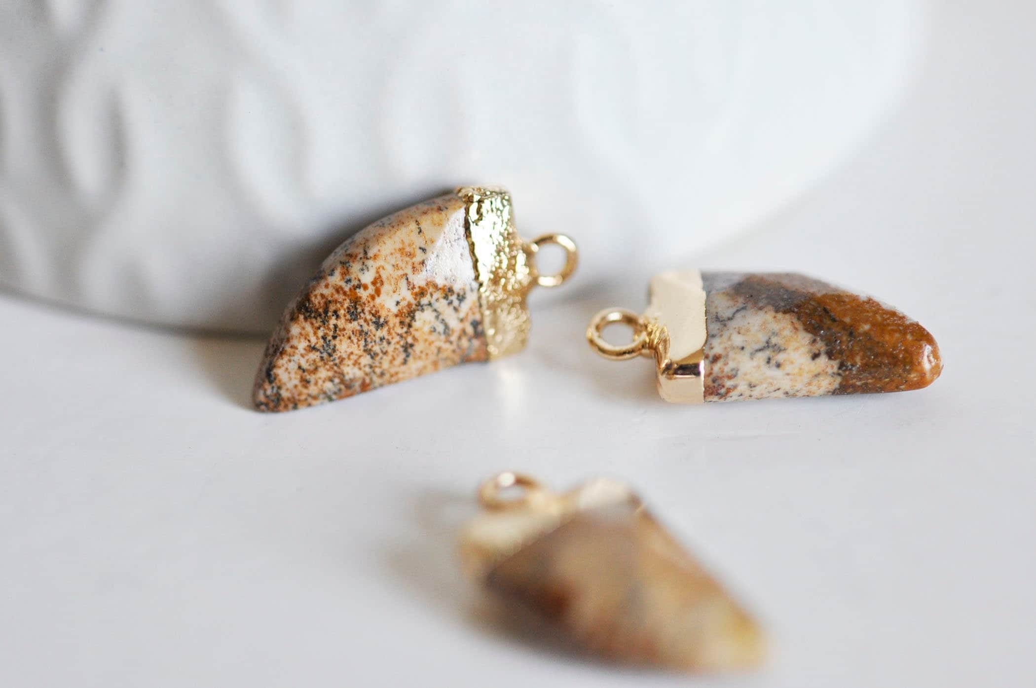 EP Colgante de cuerno de jaspe marrón, suministros creativos, colgante de joyería, colgante de piedra, jaspe natural, colgante de jaspe, 21 mm-G1213