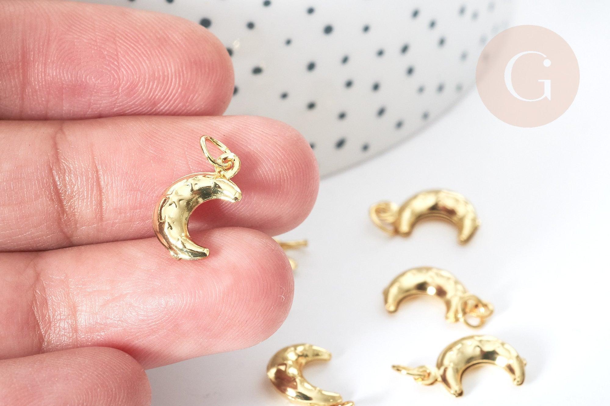 Colgante luna creciente en latón dorado 15 mm, creación de joya celestial, x 5 G8074