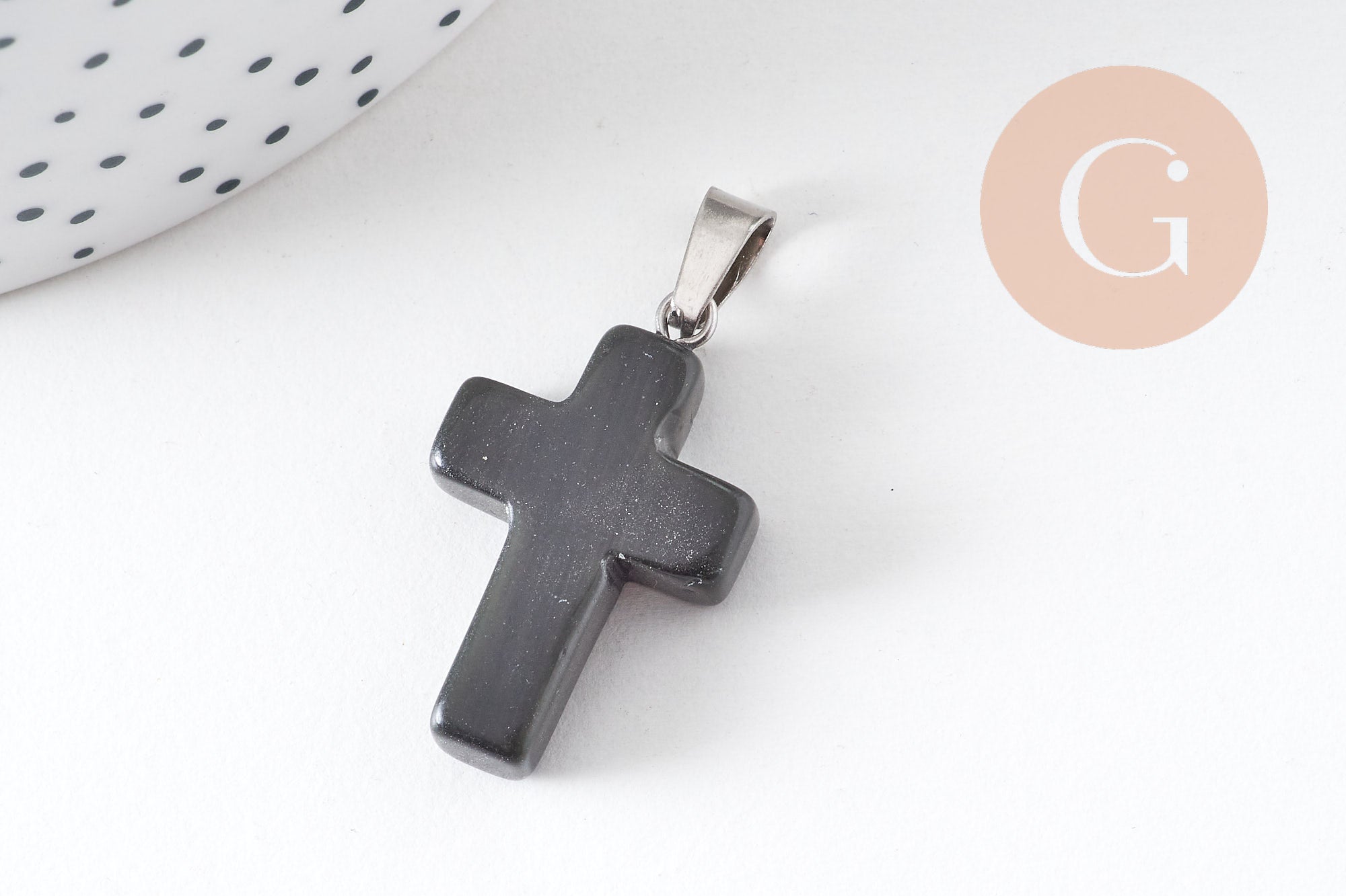 Déjese seducir por este colgante de jade natural teñido de negro en forma de cruz.