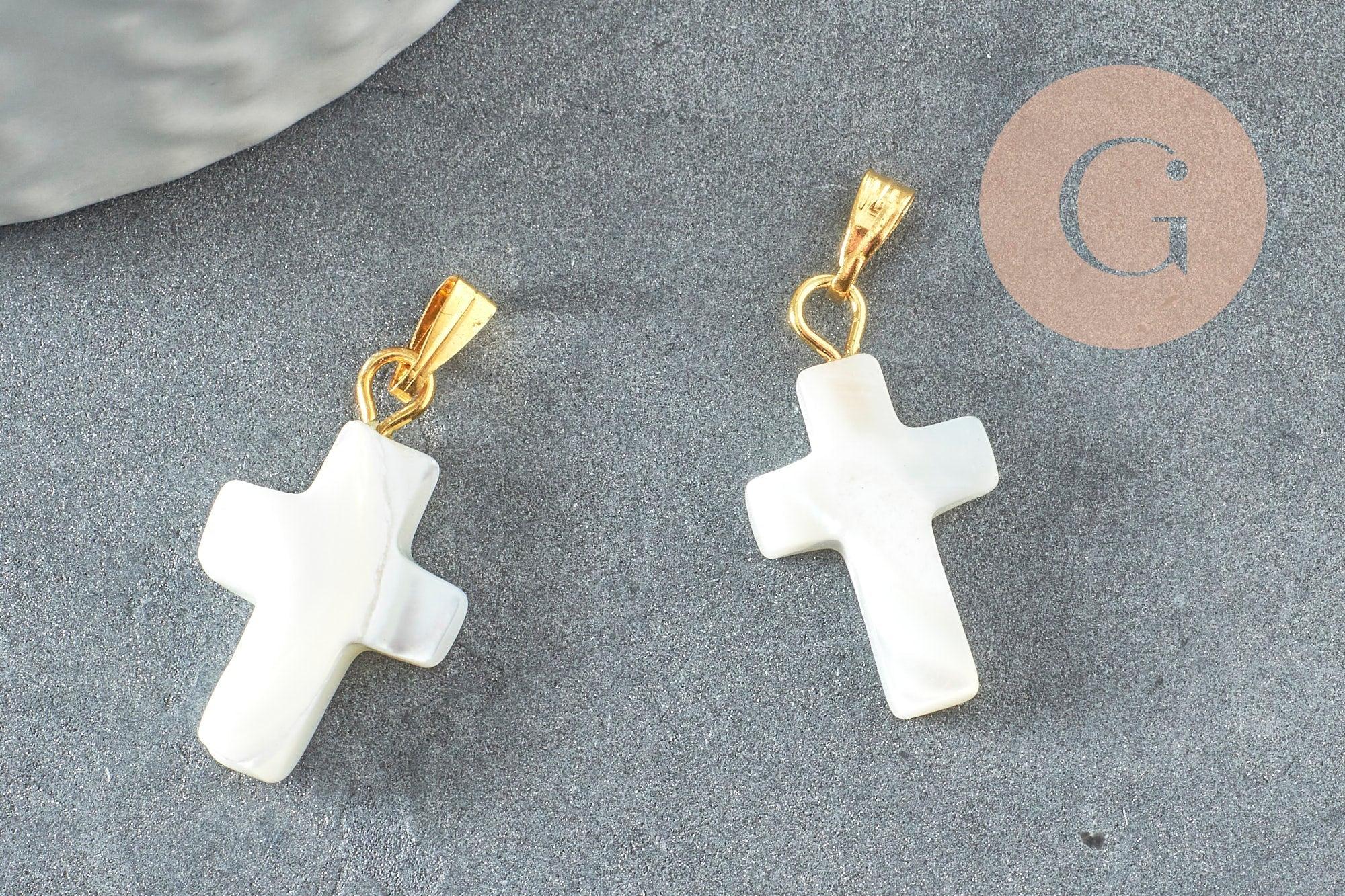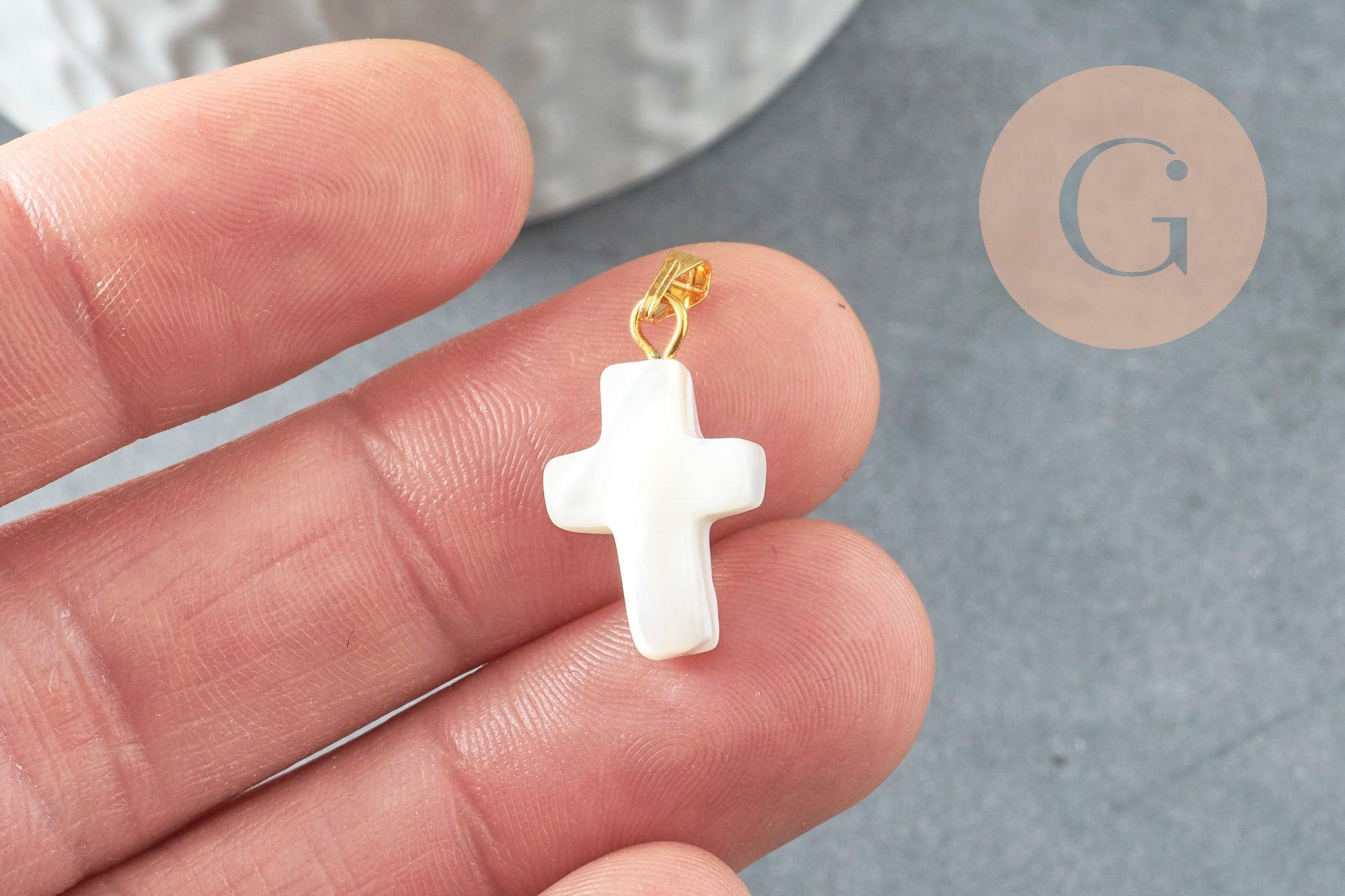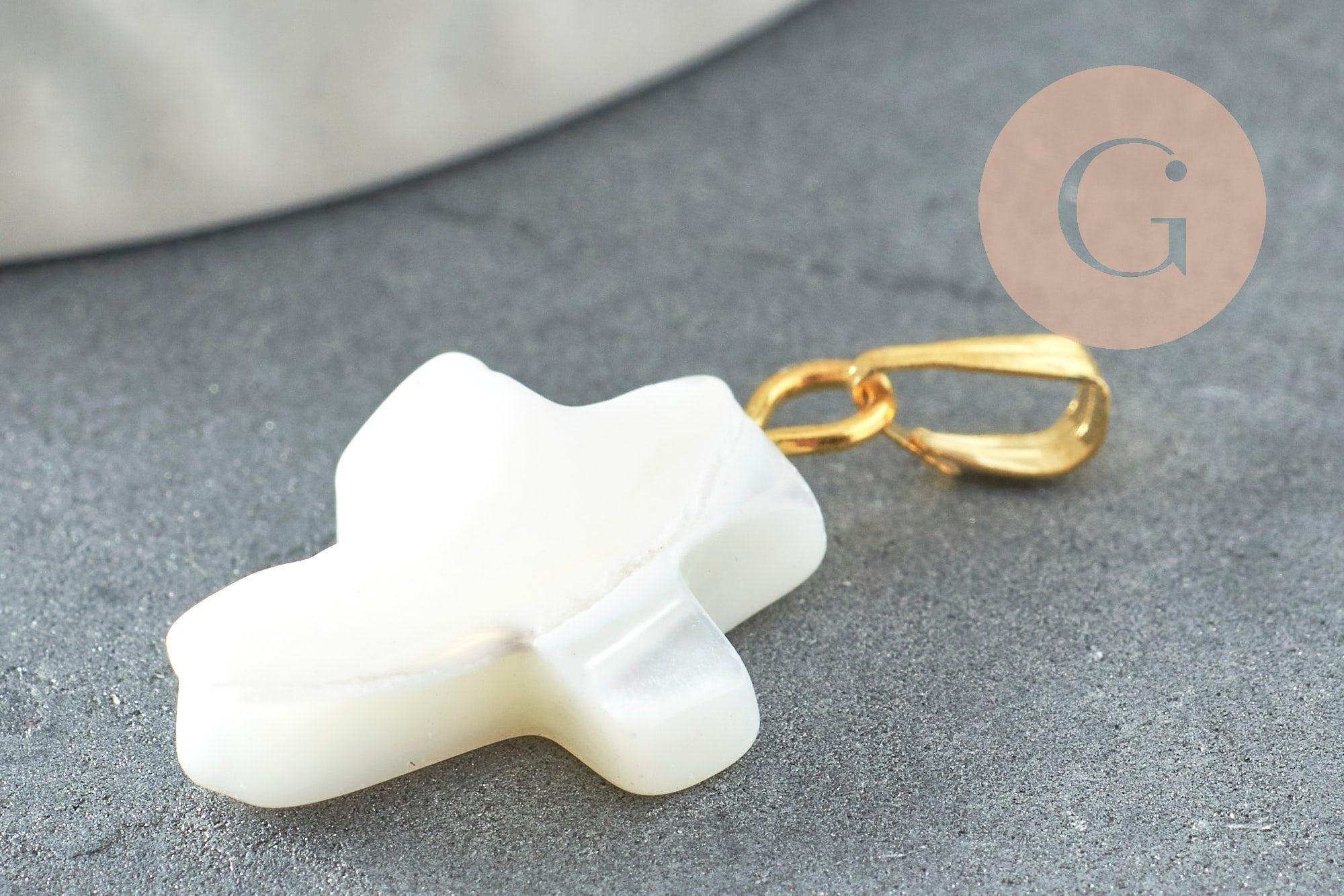 Colgante cruz de nácar blanco, colgante de nácar, soporte dorado de nácar, colgante, creación de joyas, nácar natural, 22mm, x1 G1054