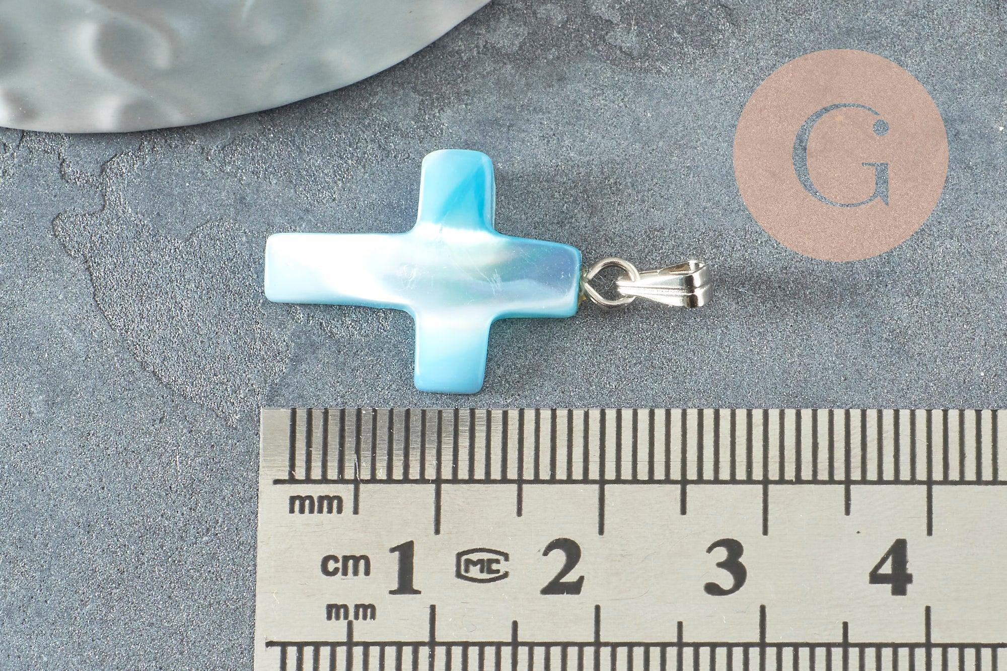 Colgante cruz de nácar azul, suministros creativos, colgante de piedra, soporte de plata, colgante, creación de joyas, nácar natural, 22 mm