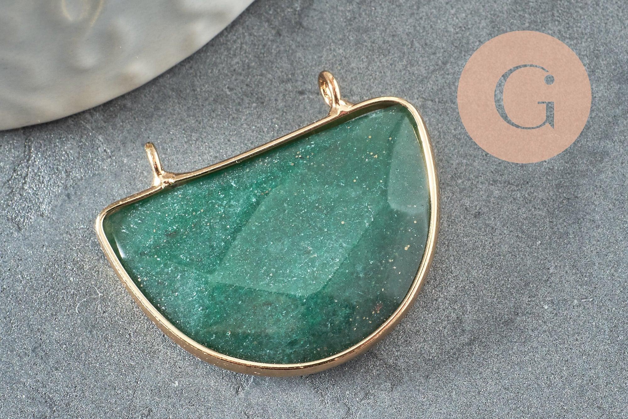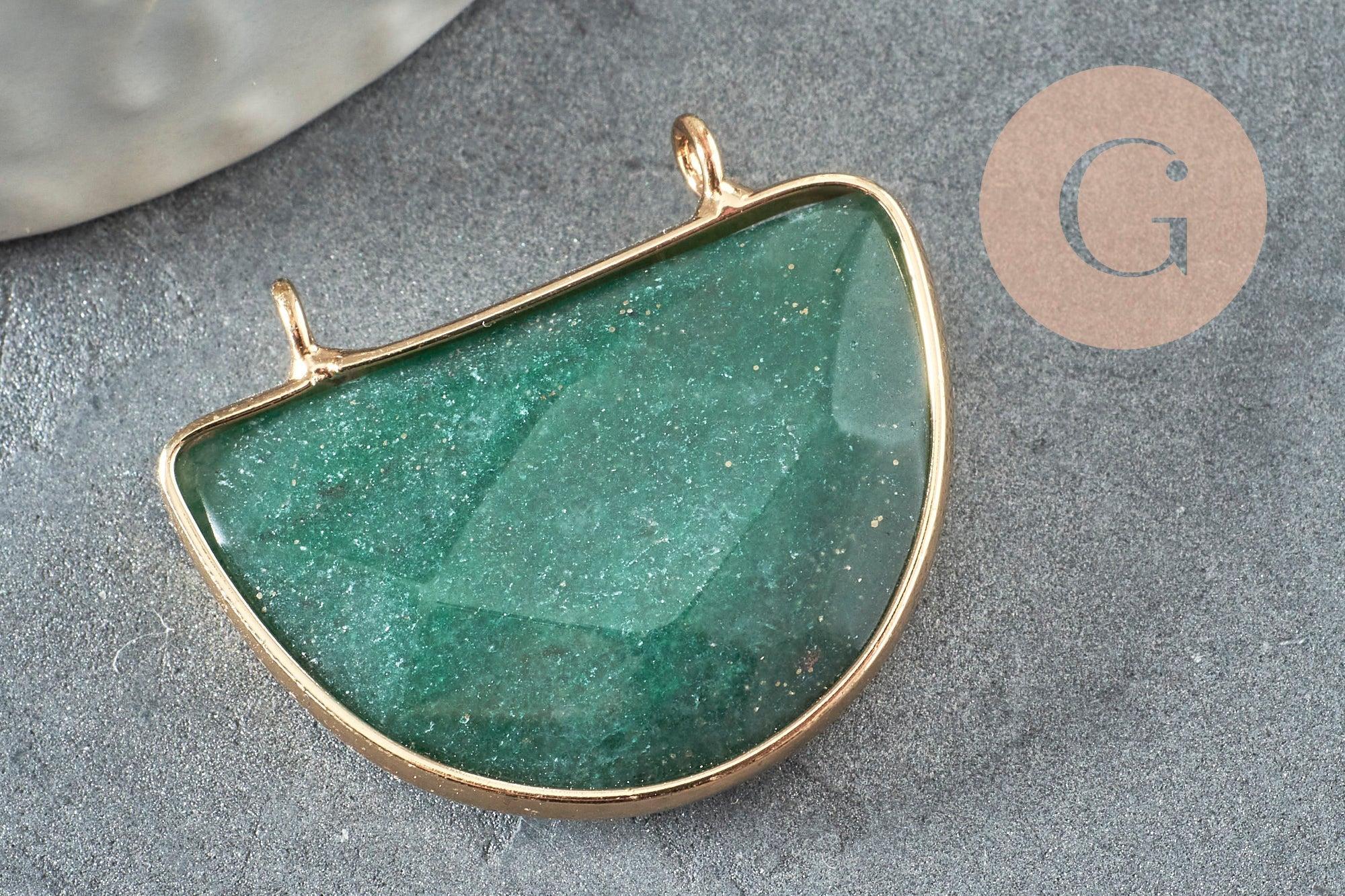 Déjate seducir por este colgante de media luna verde en aventurina verde natural facetada , para crear joyas bohemias chic muy de moda.