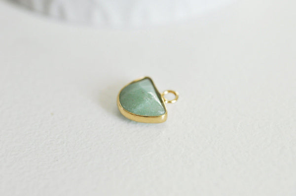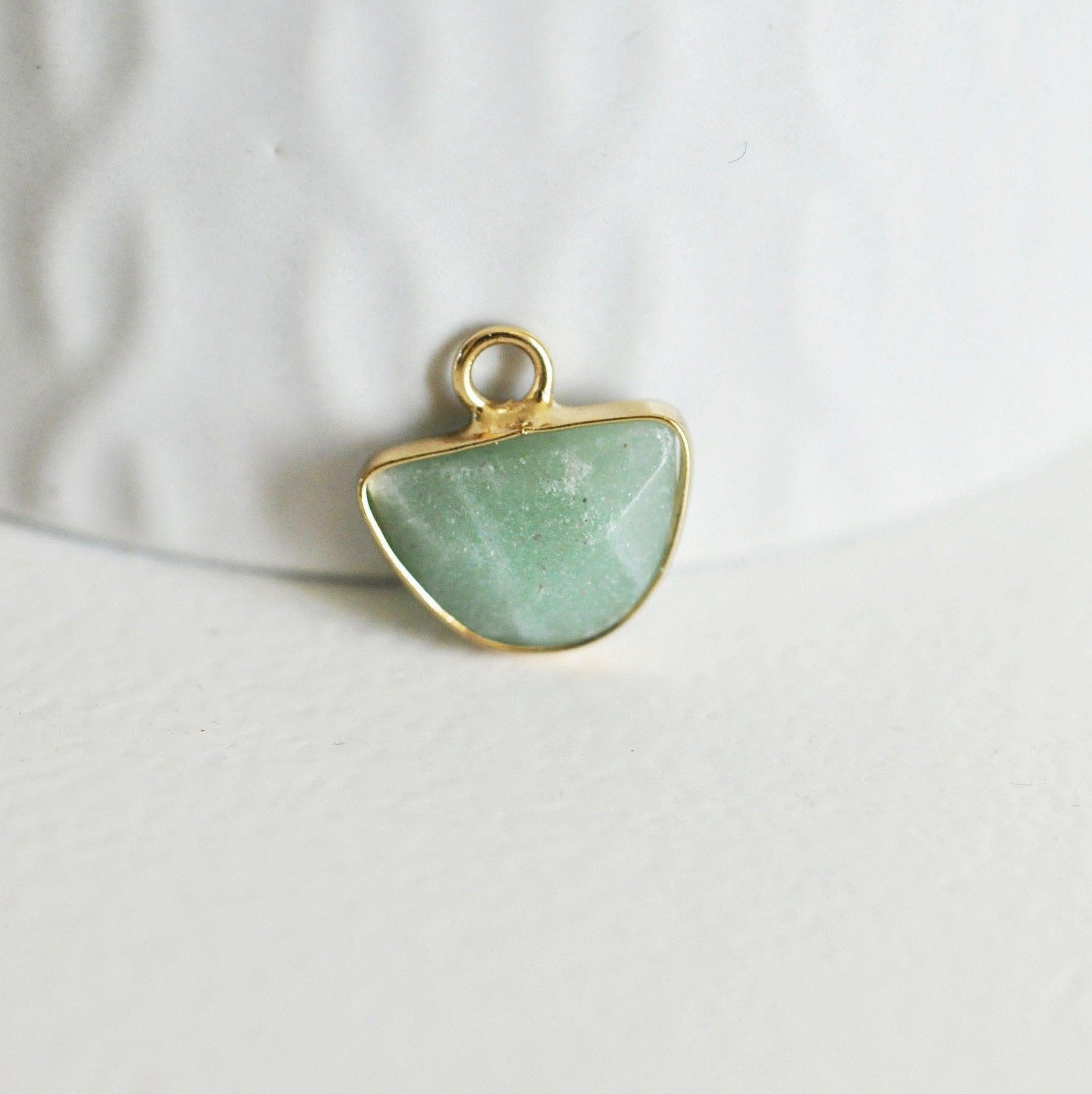 Déjate seducir por este colgante de media luna verde en aventurina verde natural facetada, para crear joyas bohemias chic muy de moda.