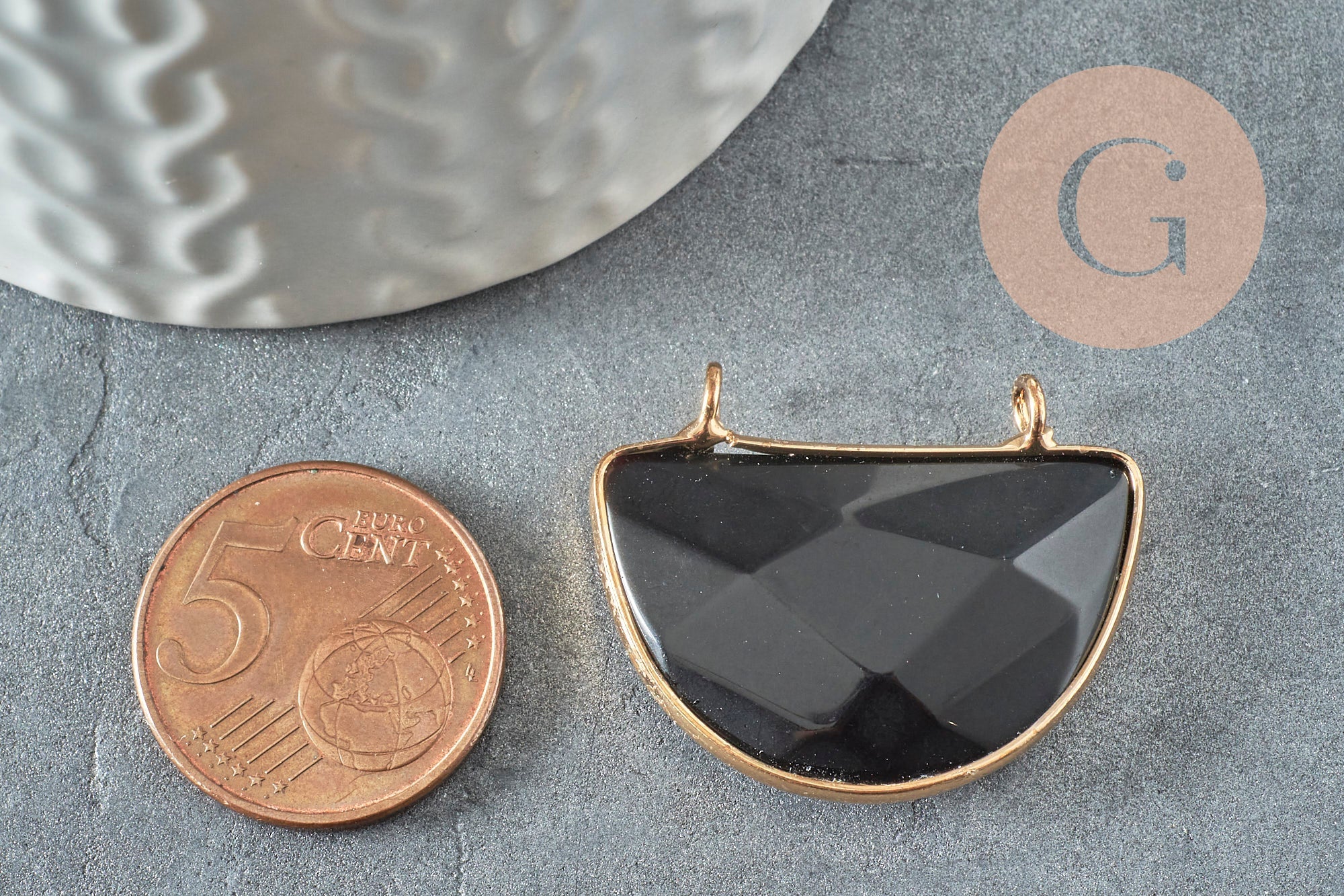 Colgante de media luna de jade negro natural latón dorado teñido 32 mm, creación de joyería de piedra natural, x1 G5887