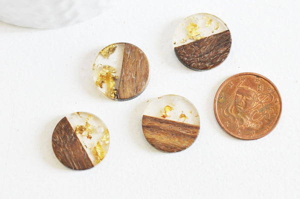 Colgante de disco de madera de resina brillante, madera natural, cuenta de madera redonda, cuenta redonda, madera, 18 mm, x5 G4540