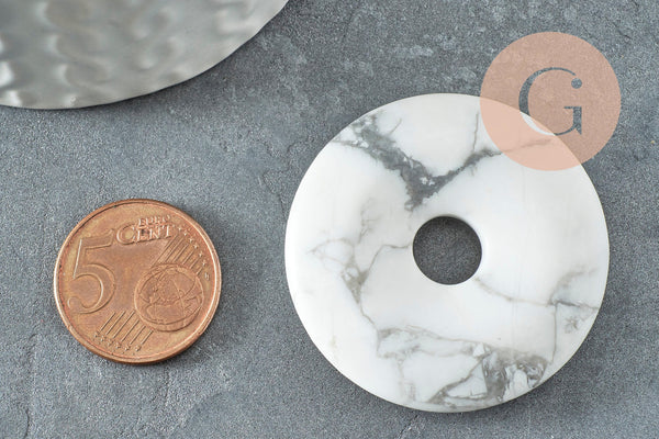 Colgante de donut de howlita blanca jaspeada, colgante de joyería de piedra, howlita natural, 39-40 mm, unidad