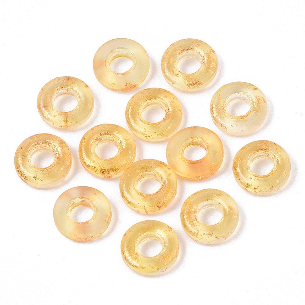 Colgante de donut de vidrio amarillo y pan de oro, un colgante de vidrio redondo para sus creaciones de joyería, 15x3 mm, x 10 (3,5 g) G3505