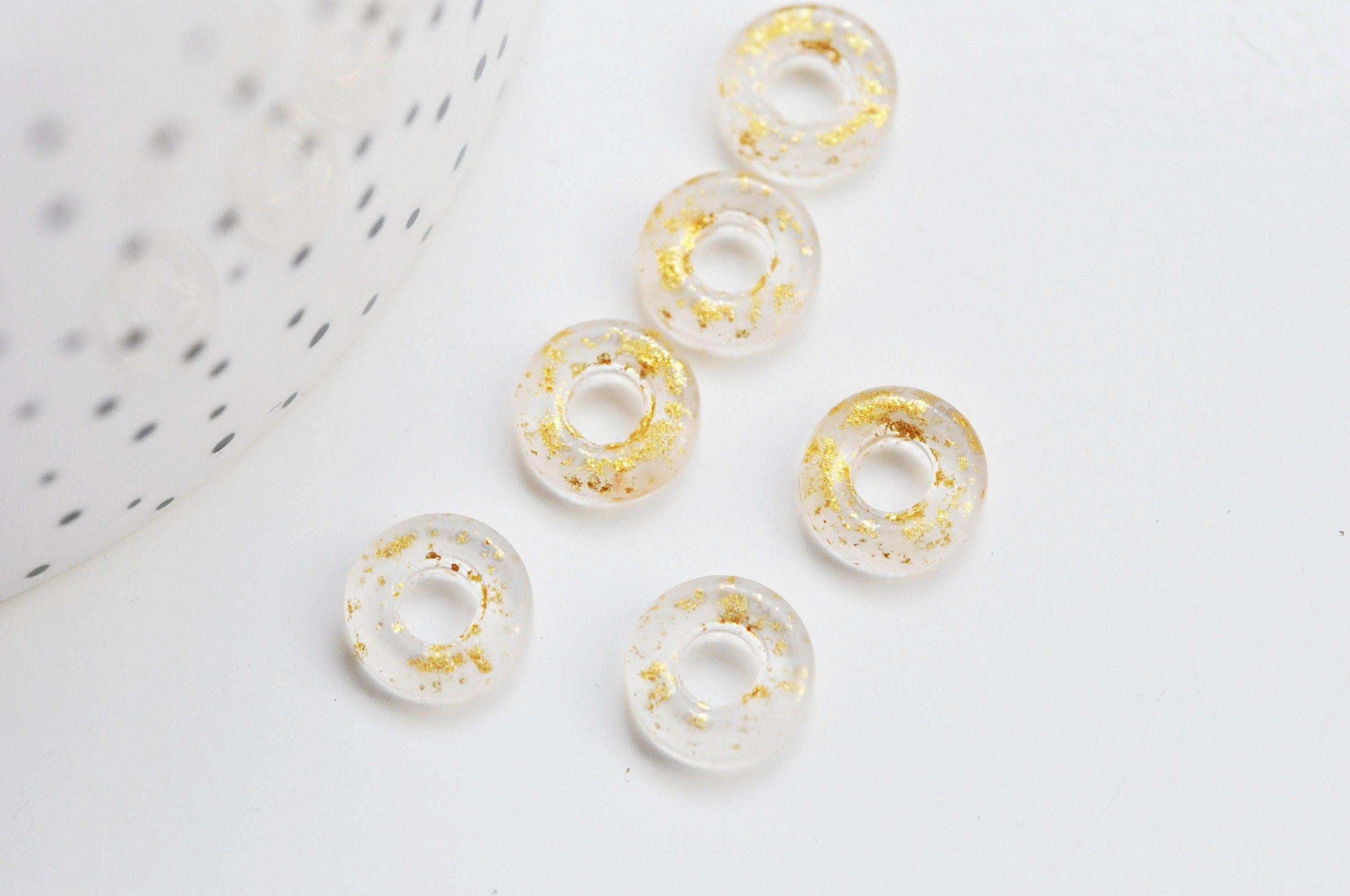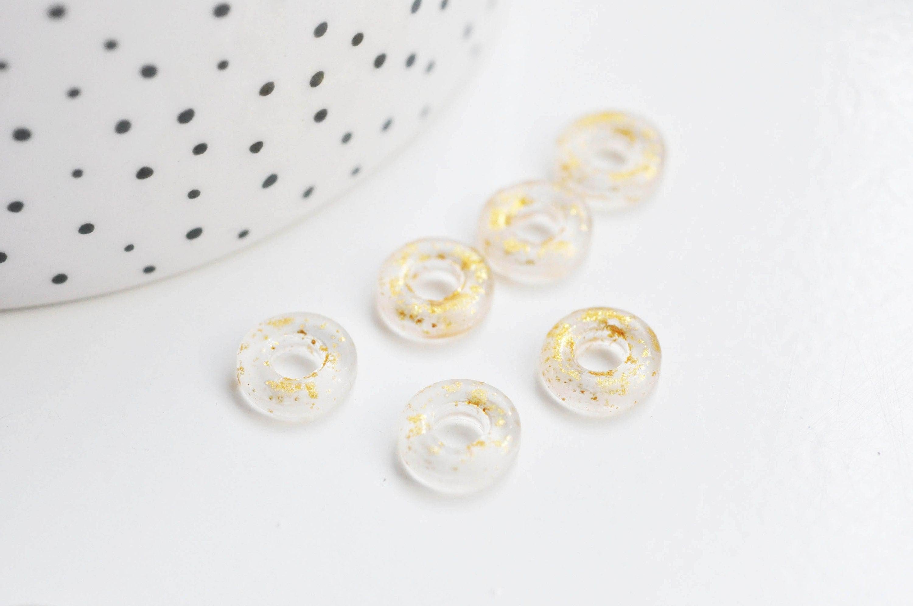 Colgante de donut de vidrio transparente y pan de oro, un colgante de vidrio redondo para sus creaciones de joyería, 15x3 mm, x 10 (3,5 g) G3299