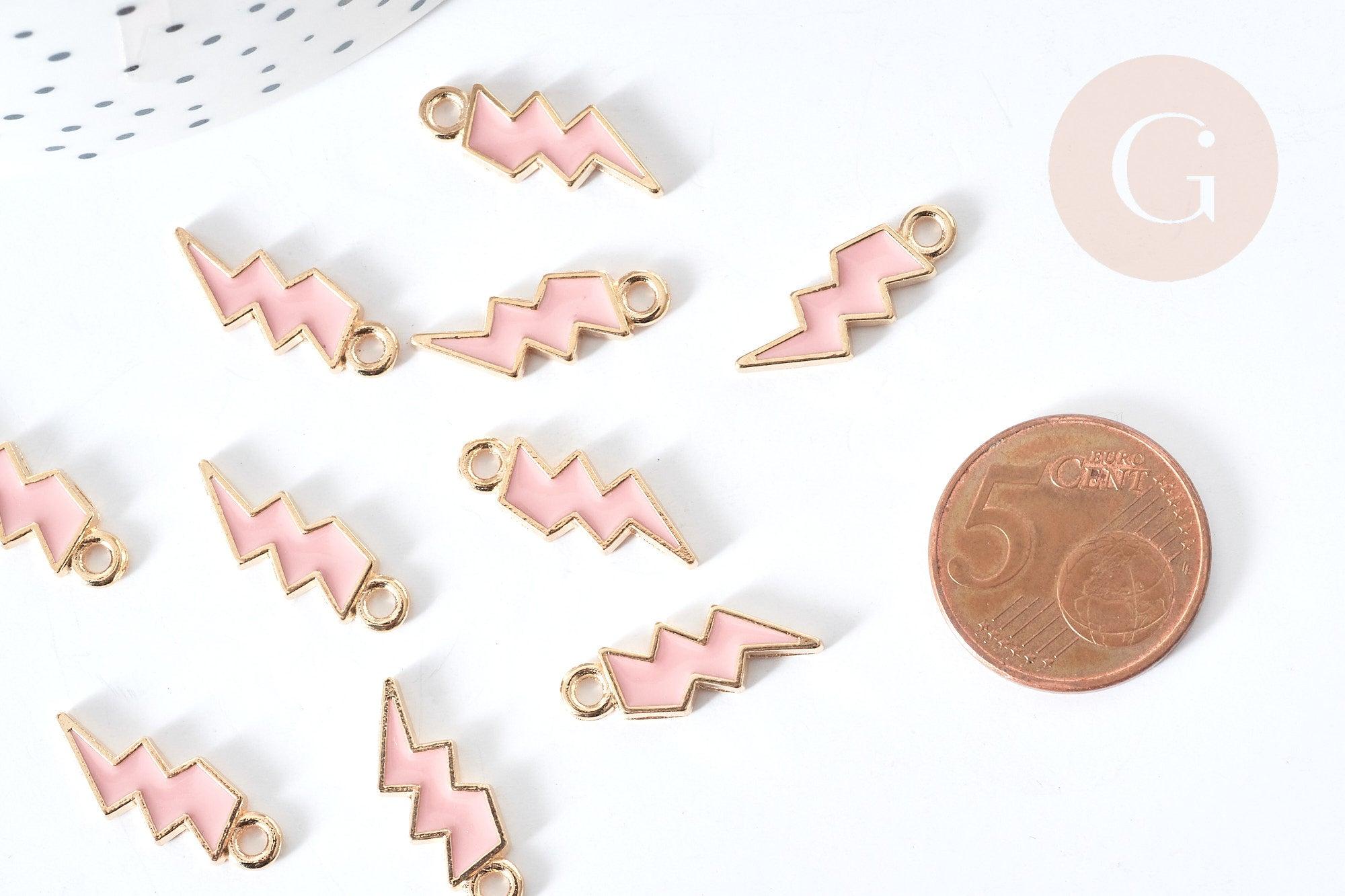 Colgante rayo dorado esmaltado rosa claro zamac dorado 20mm, creación de joyería colgante dorado, x 5 G8091