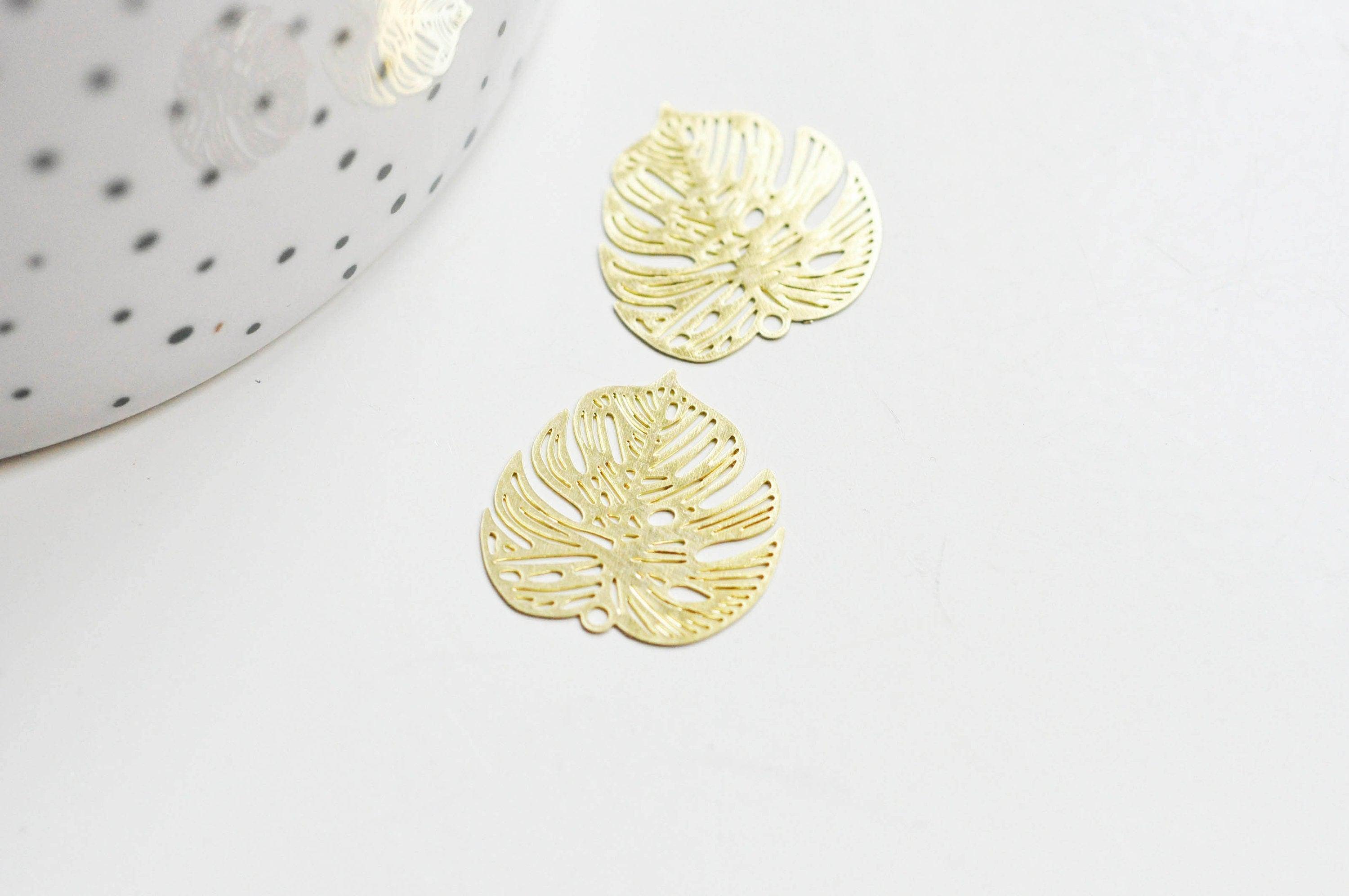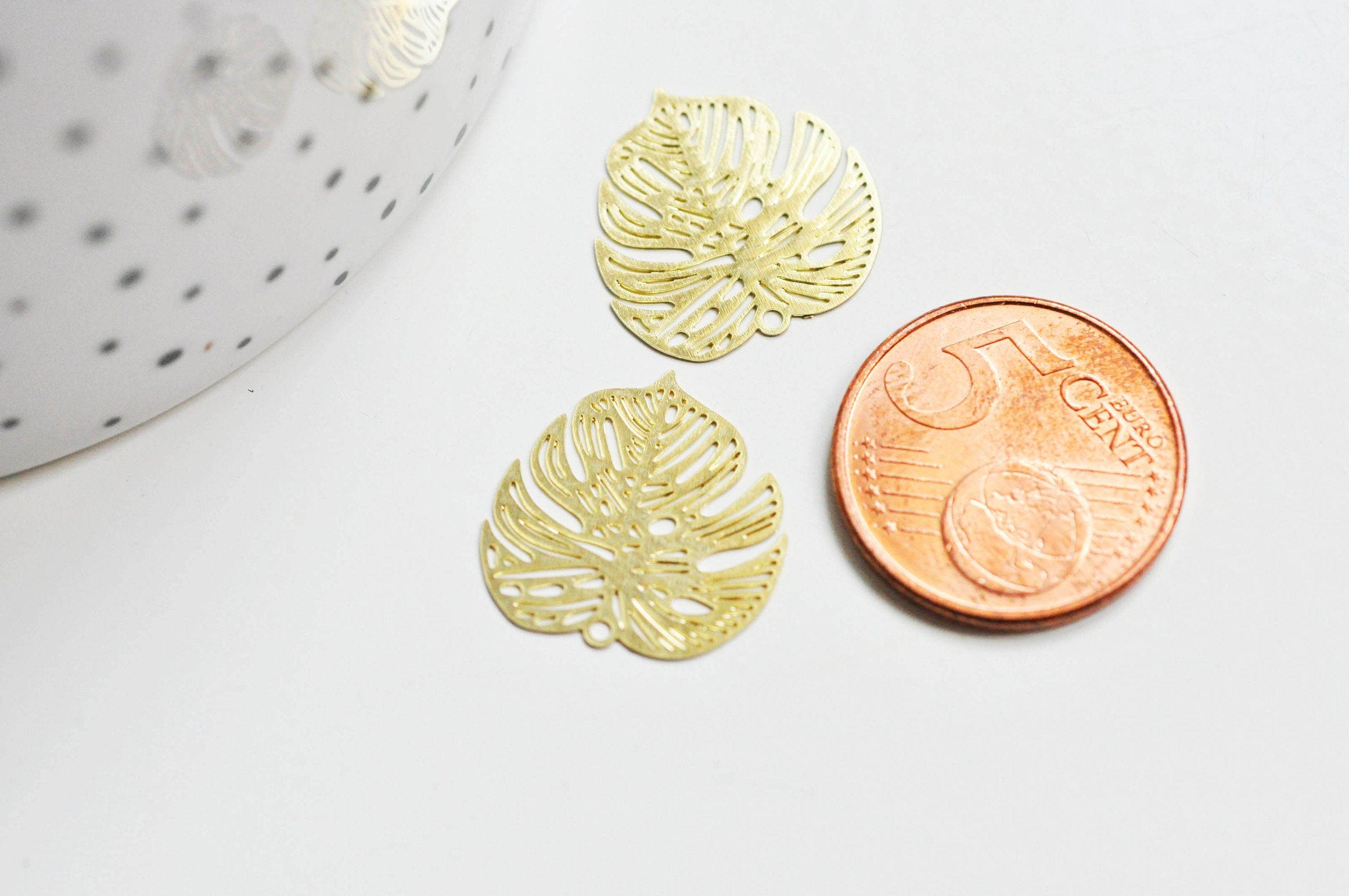Colgante con estampado de filigrana de hoja de monstera en latón dorado, Colgante muy fino y ligero para la creación de joyas, Lote de 2, 18x 18mm Un conjunto de dos estampas muy finas sobre un motivo vegetal muy fino....