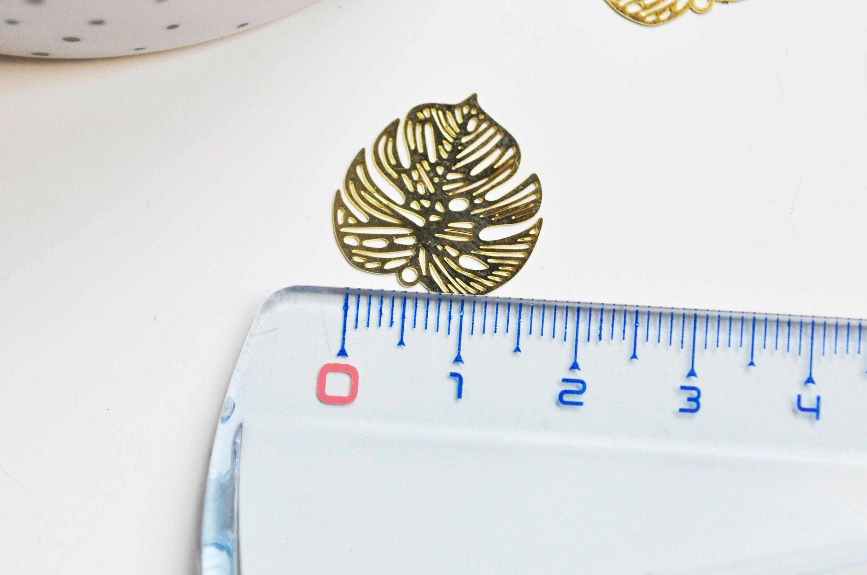 Colgante EP Filigree con estampado de hojas de monsterosa en latón dorado, colgante muy fino y ligero para la creación de joyas, x 2,18x 18 mm G3696