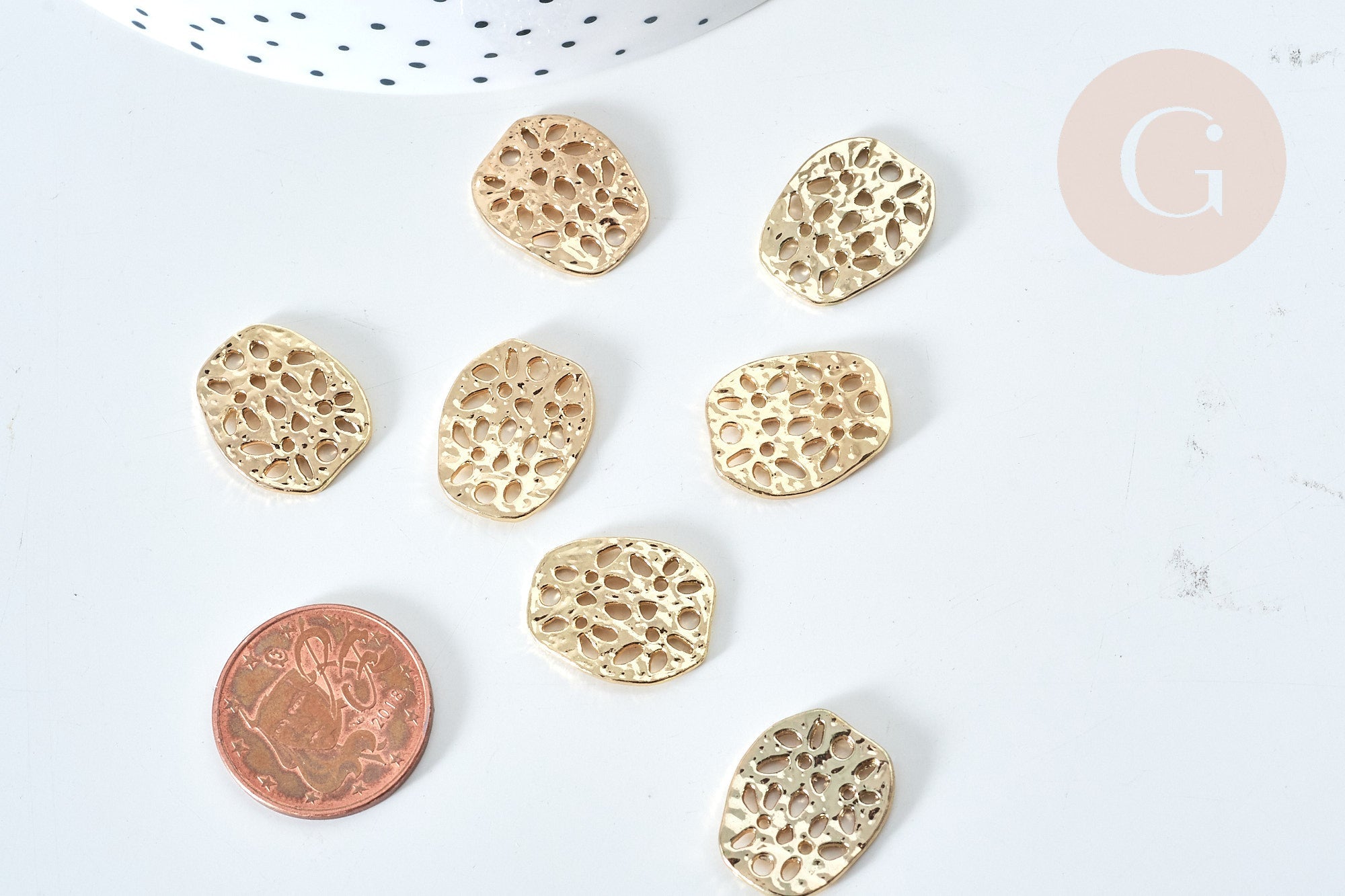 Pendentif estampe filigrane ovale zamac doré clair 18mm, Pendentif fin et léger création bijoux, x 5 G7859