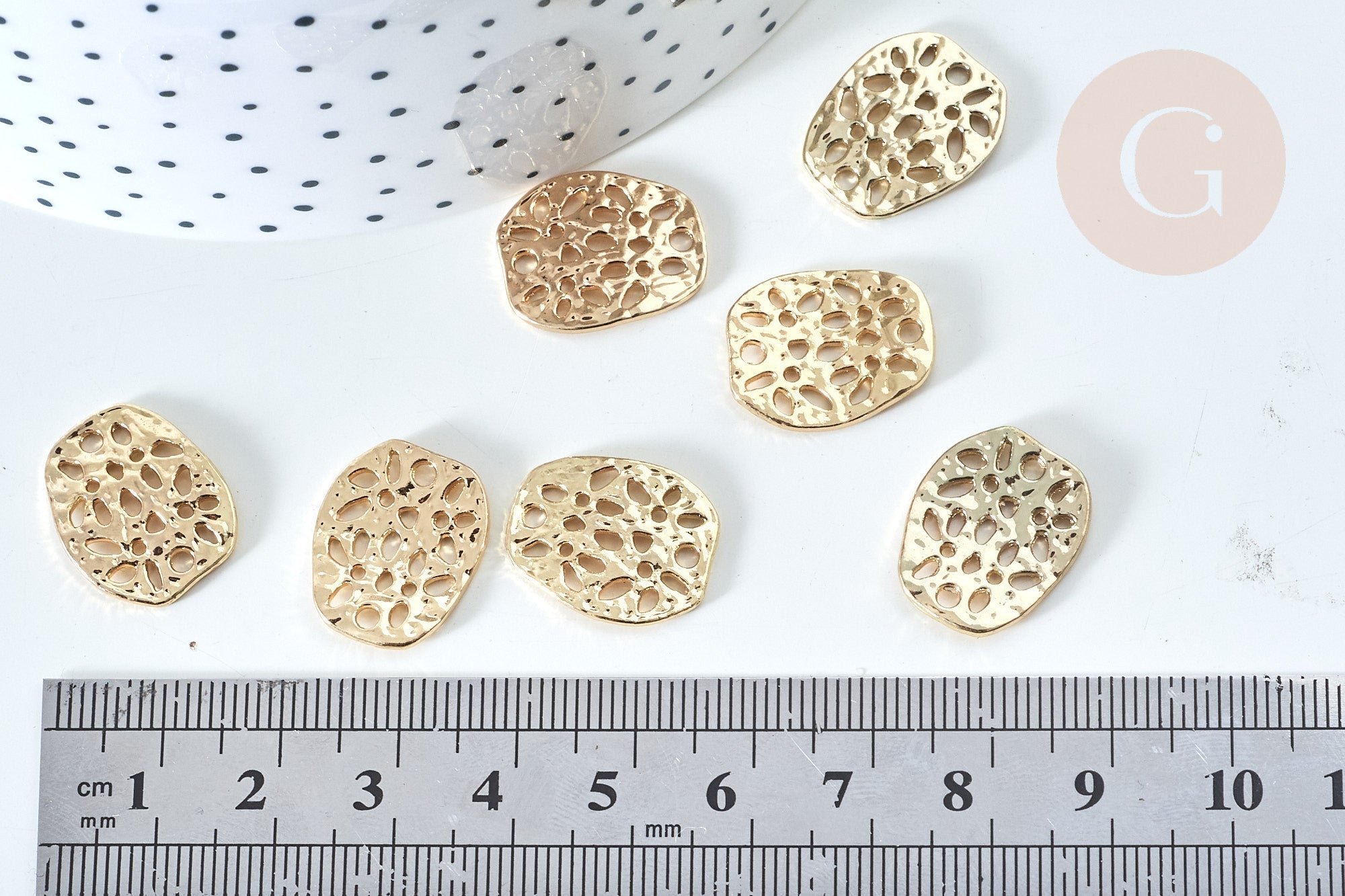 Colgante con estampado de filigrana ovalada de zamac dorado claro 18 mm, creación de joyería colgante fina y ligera, x 5 G7859