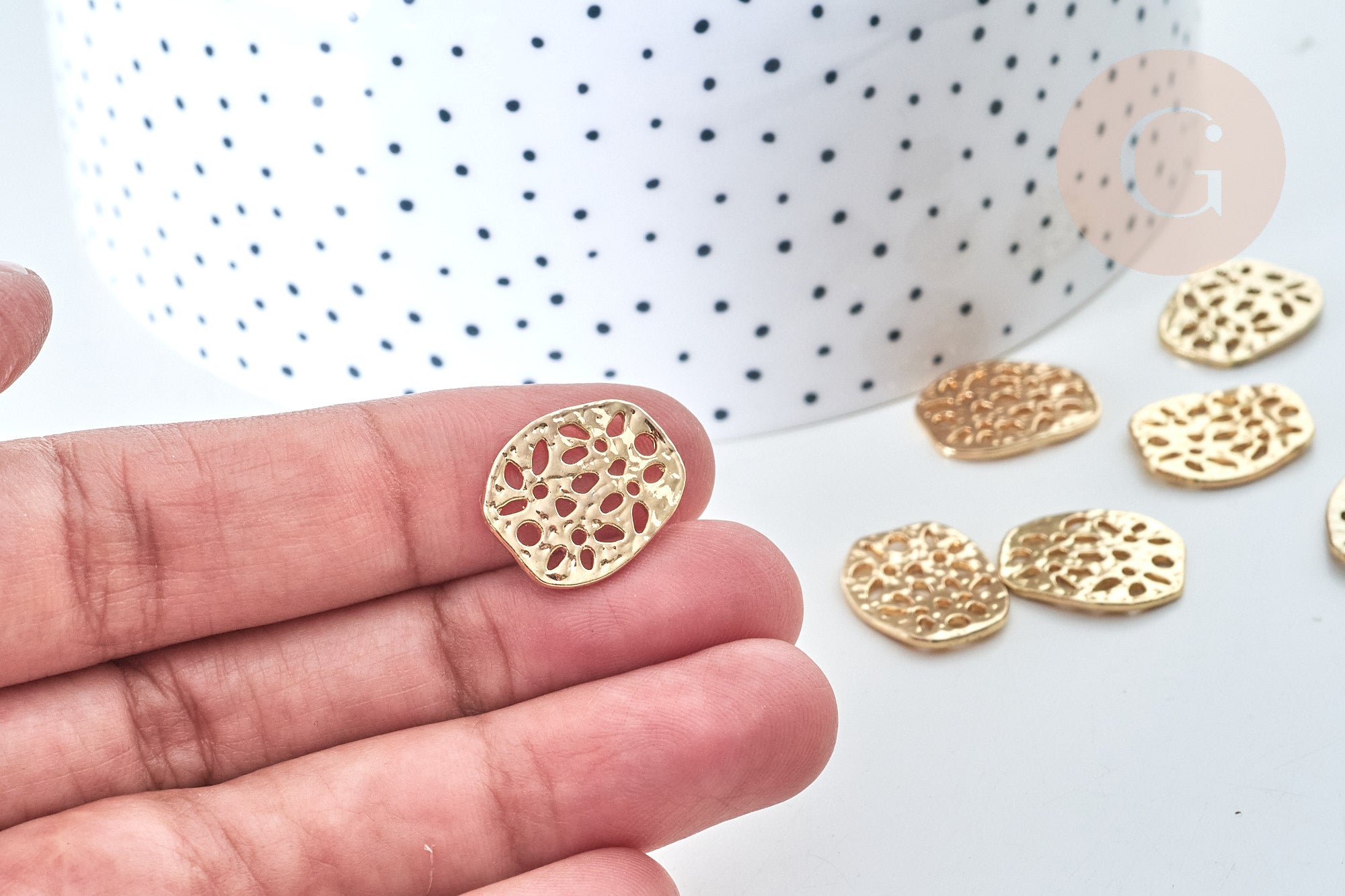 Adopta este ligero colgante ovalado de zamac dorado , ideal para realizar pendientes, collares y gargantillas.