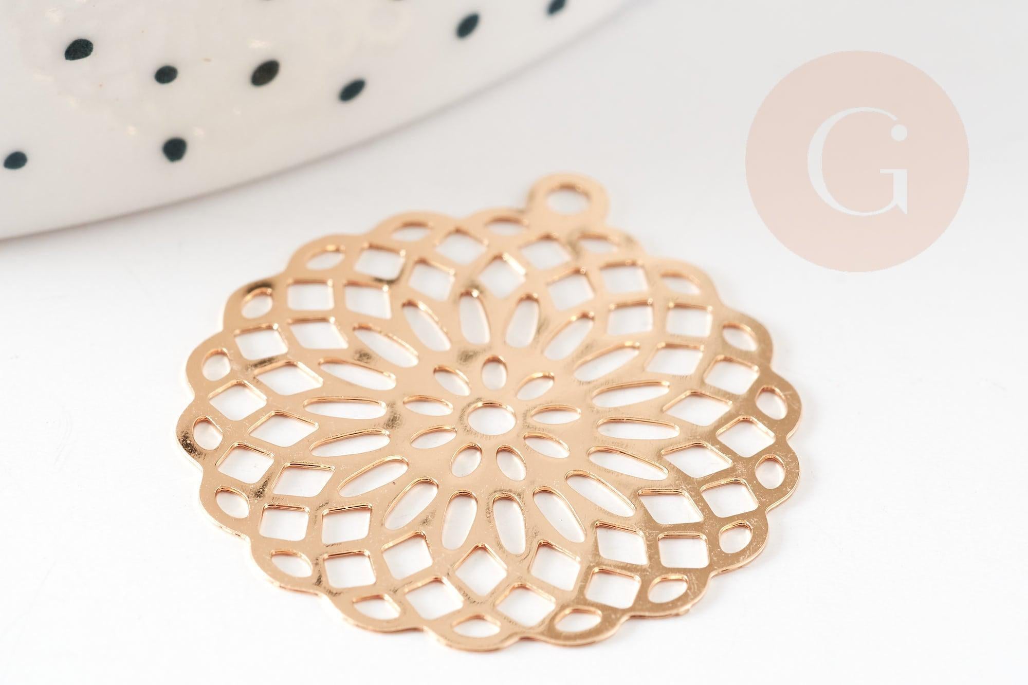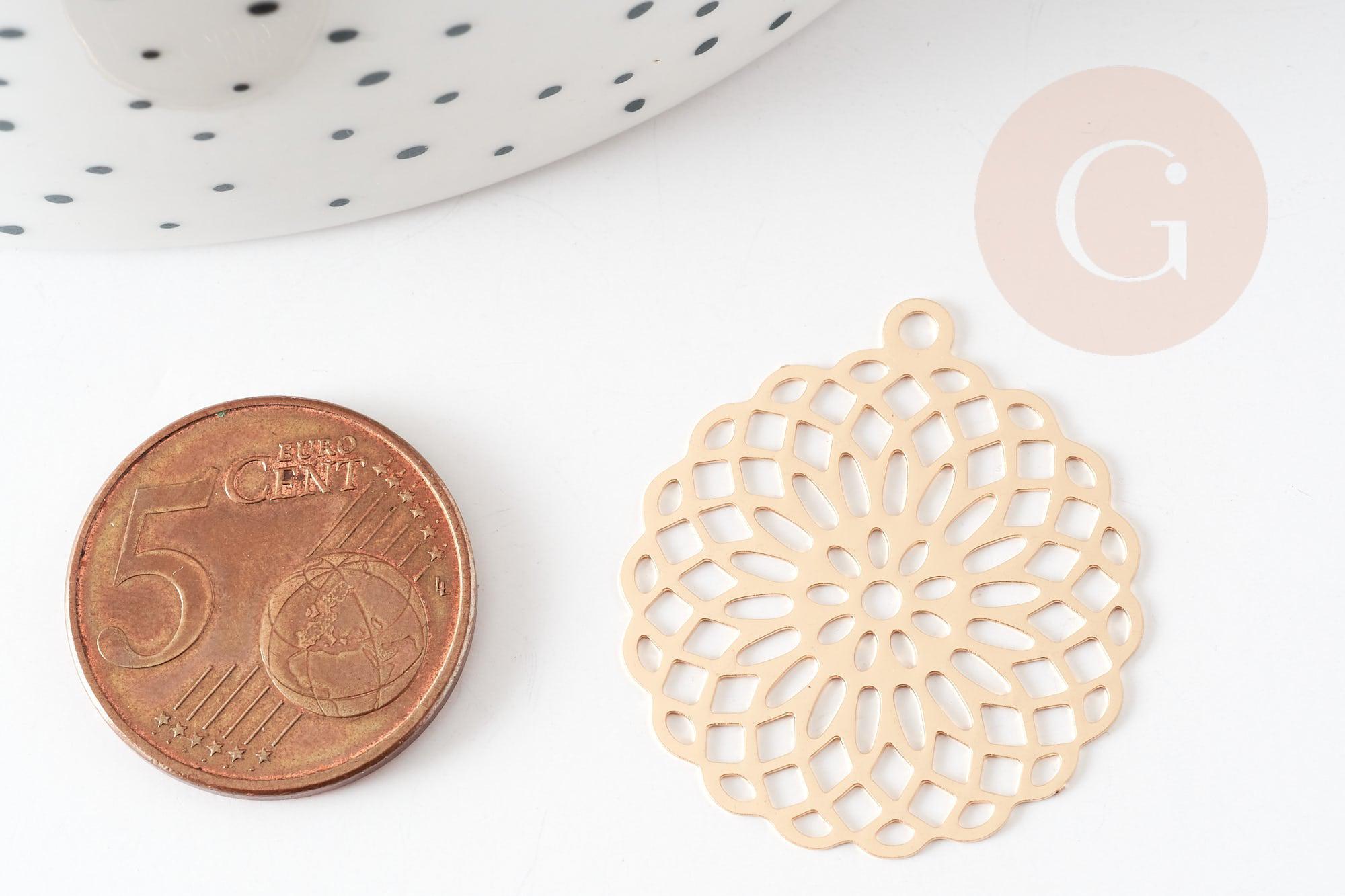 Pendentif estampe filigrane rond fleur laiton doré 30mm, Pendentif très fin et léger pour création de bijoux, x2 G9276