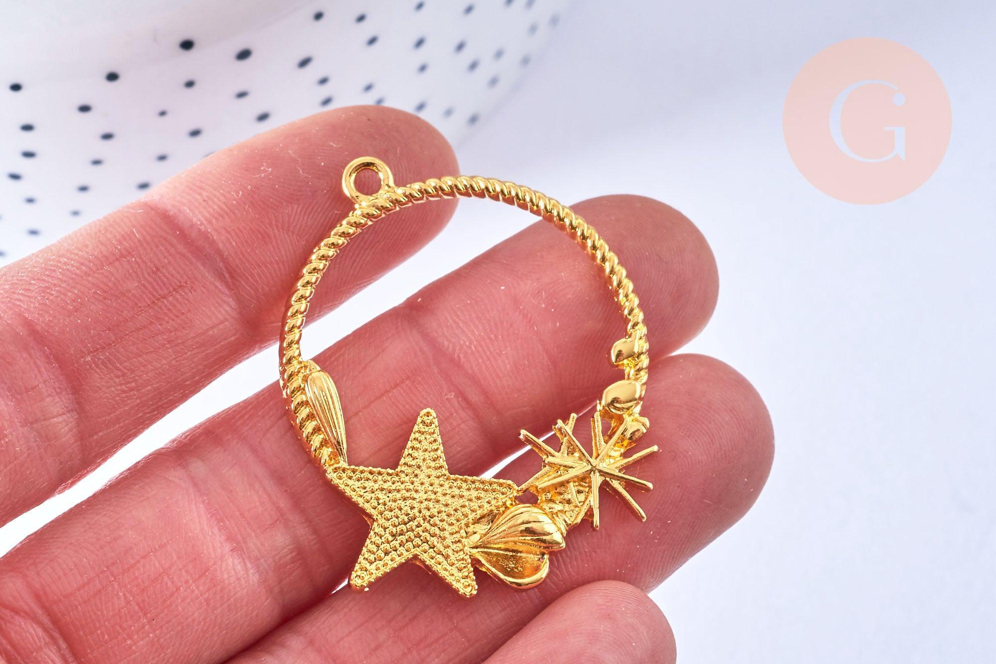 Pendentif rond étoile de mer coquillages zamac doré 42mm, pendentif étoile de mer pour création résine bijoux DIY, x1 G6875