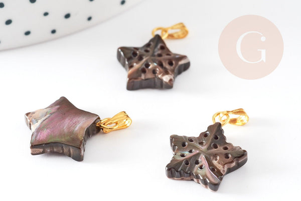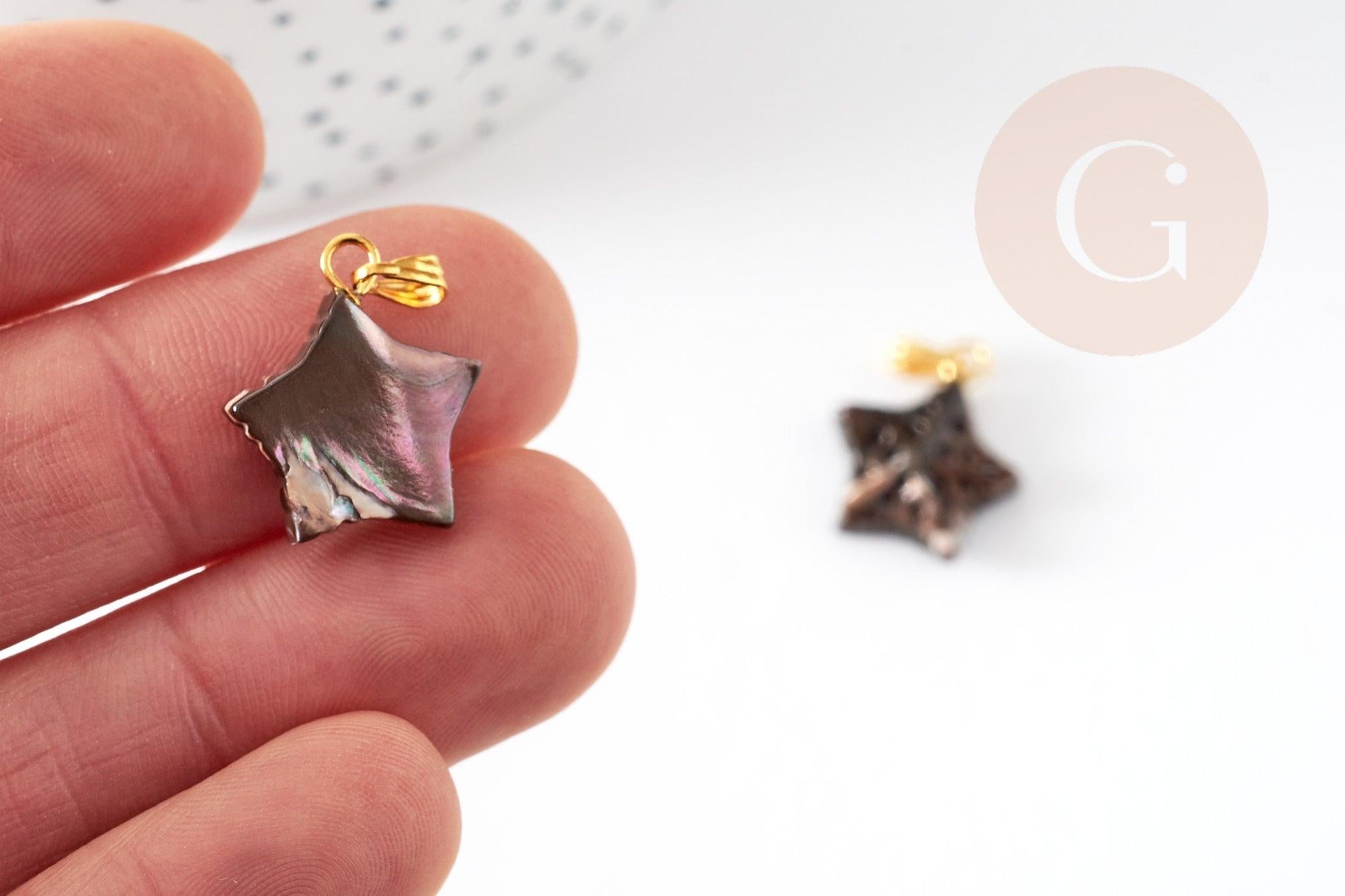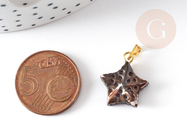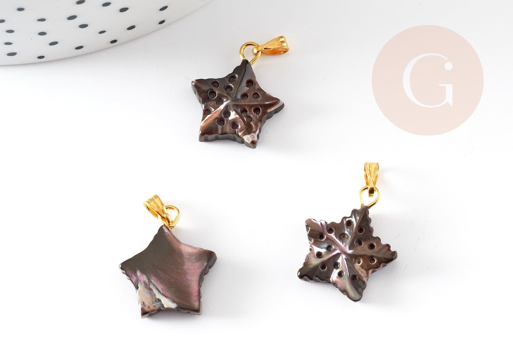 Colgante de estrella de mar de oro de nácar natural negro, colgante de estrella de nácar, concha negra, creación de joyas, 18 mm, cada uno