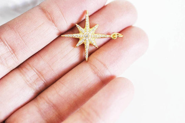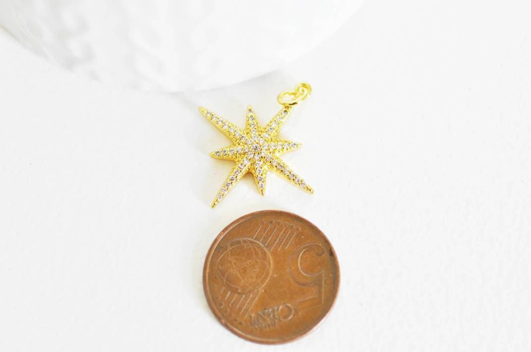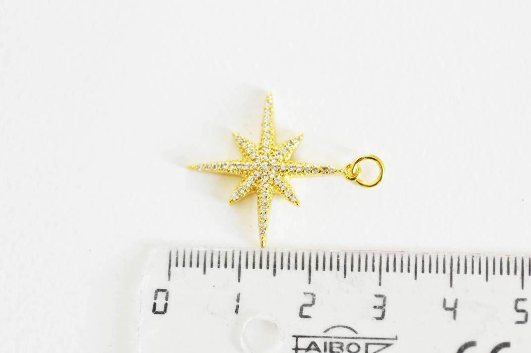Colgante de estrella del norte de latón dorado decorado con circonita blanca en el centro.