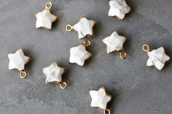 Déjate seducir por este pequeño colgante de estrella en howlita natural jaspeada con su soporte dorado.