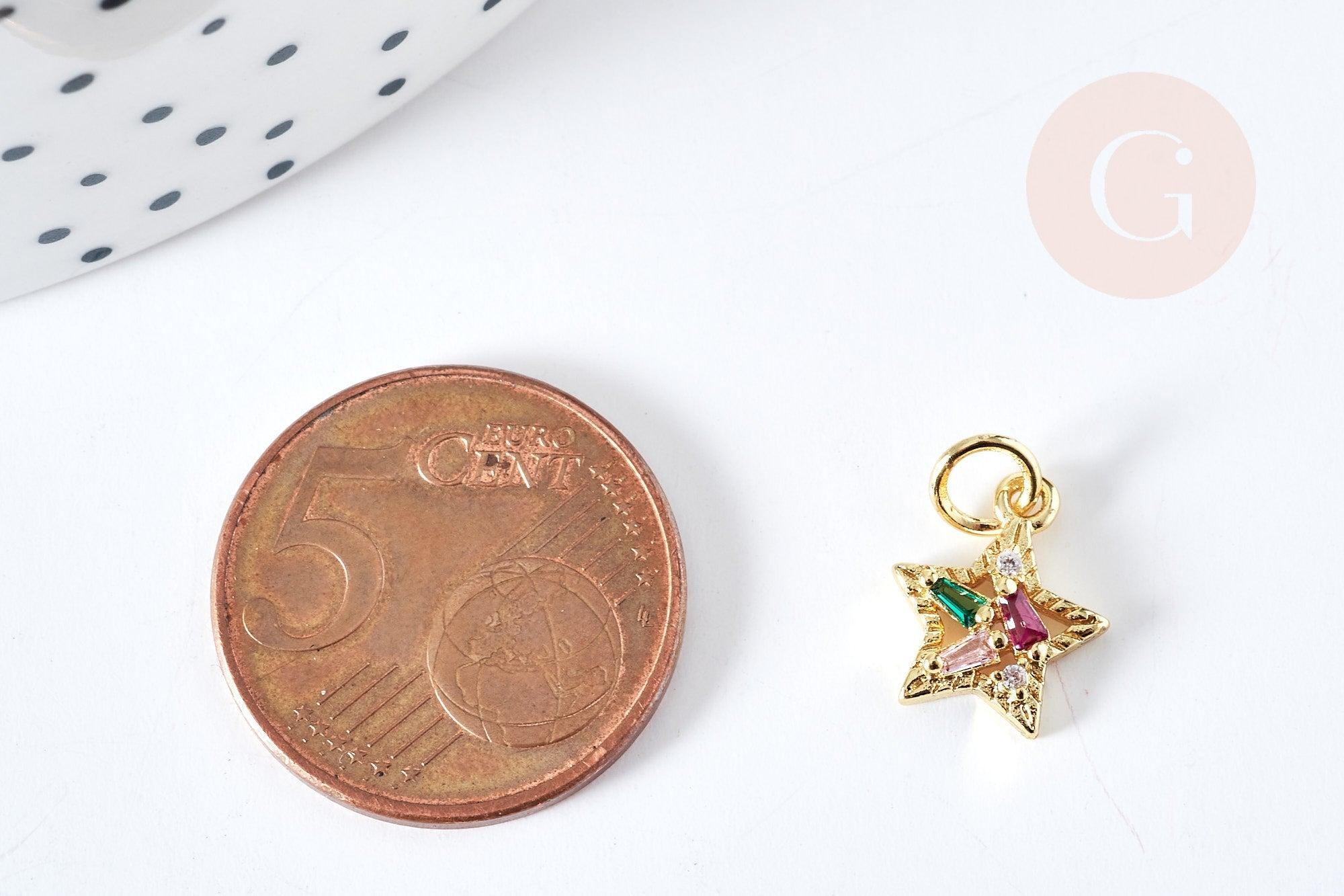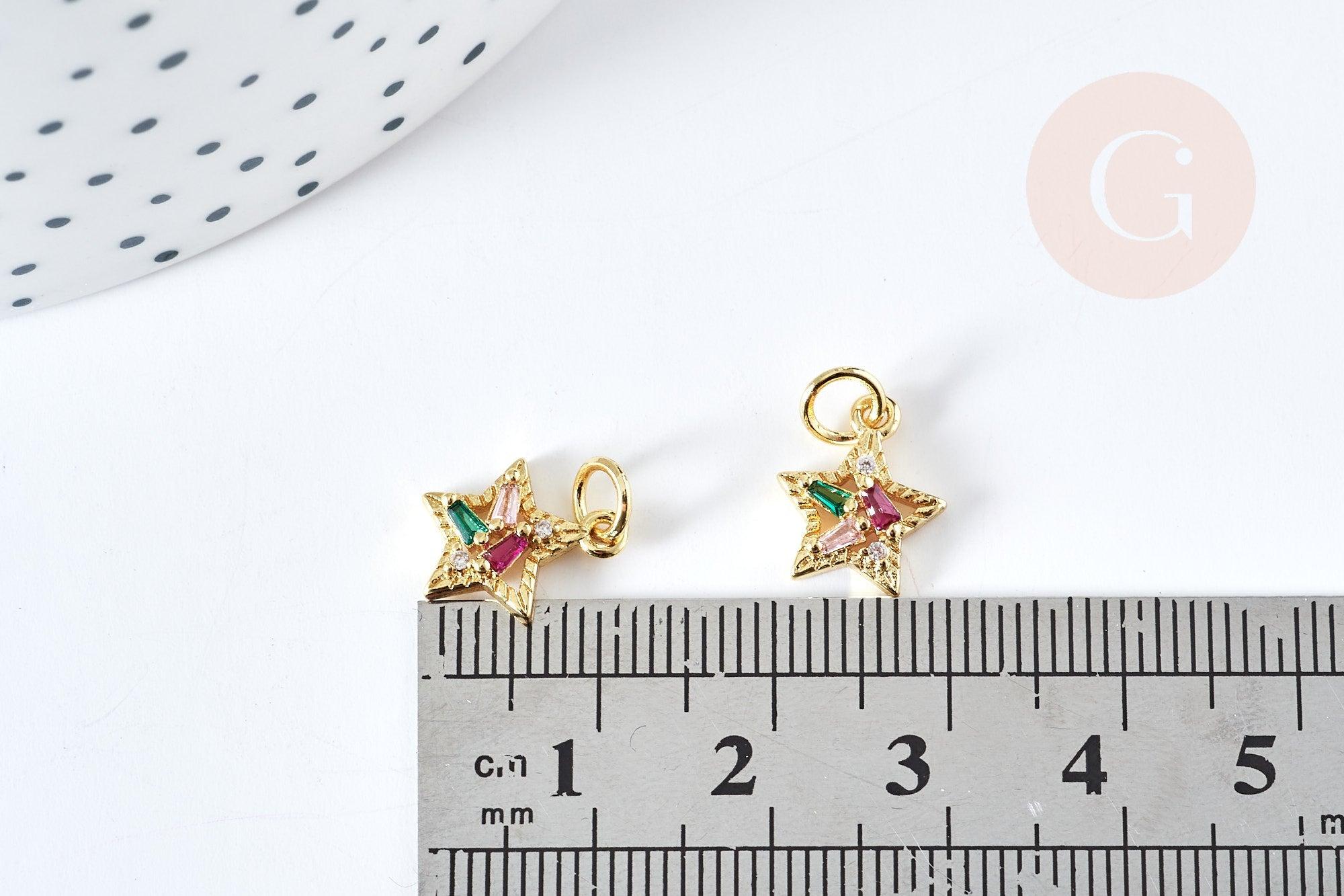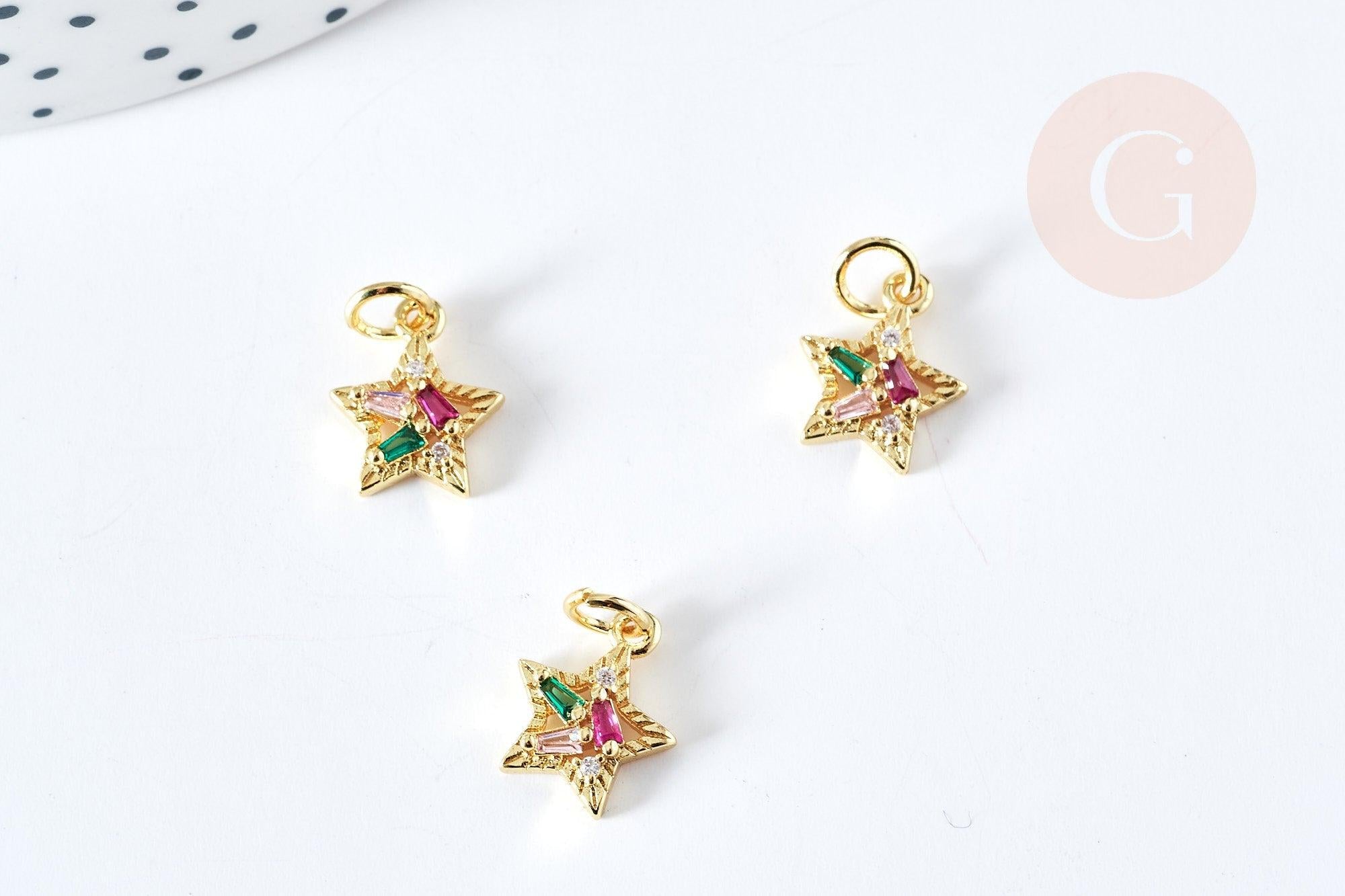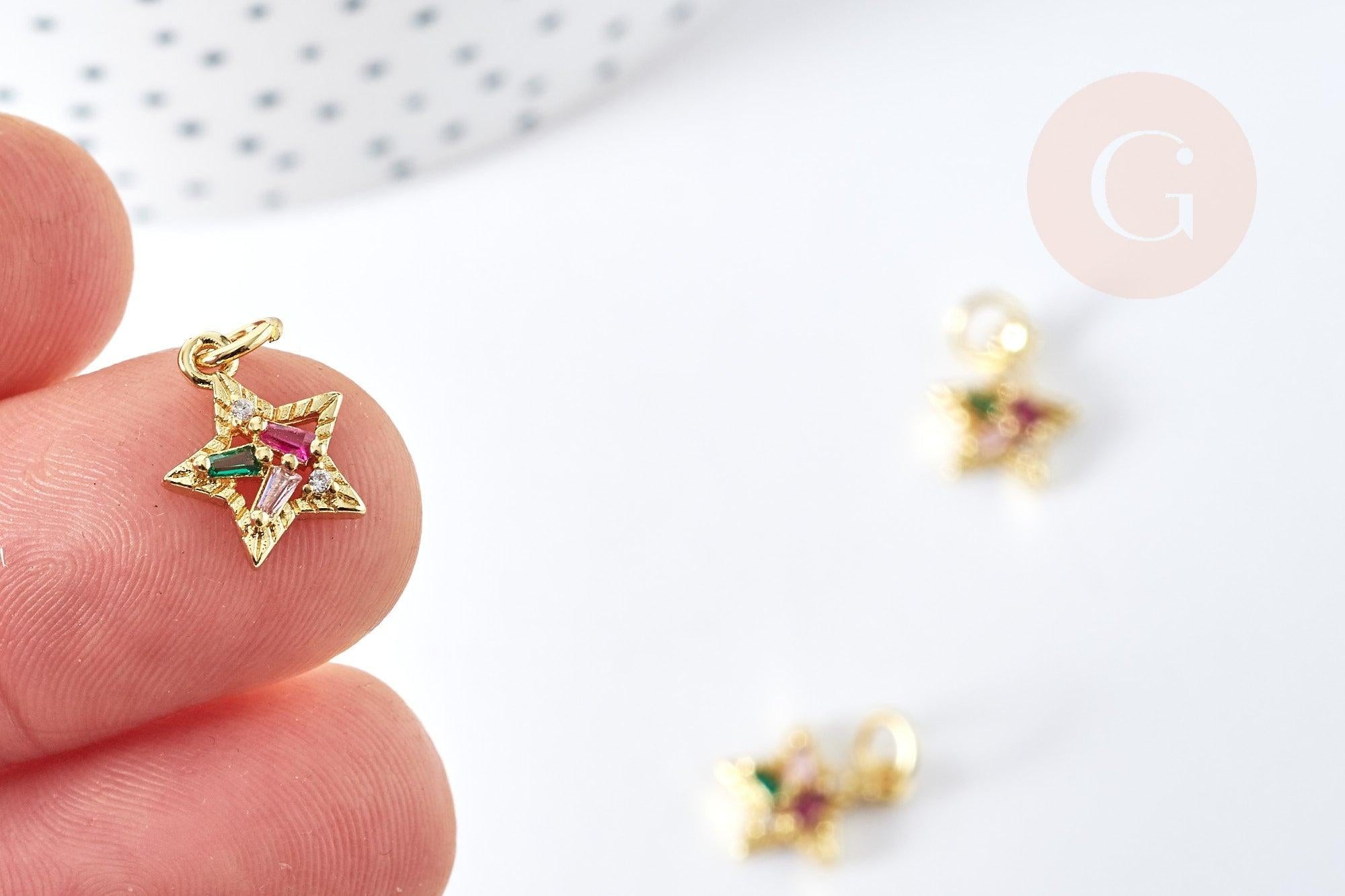 Este colgante de estrella de latón bañado en oro de 18 quilates decorado con cristales de circonitas multicolores es perfecto para crear una amplia variedad de bisutería.