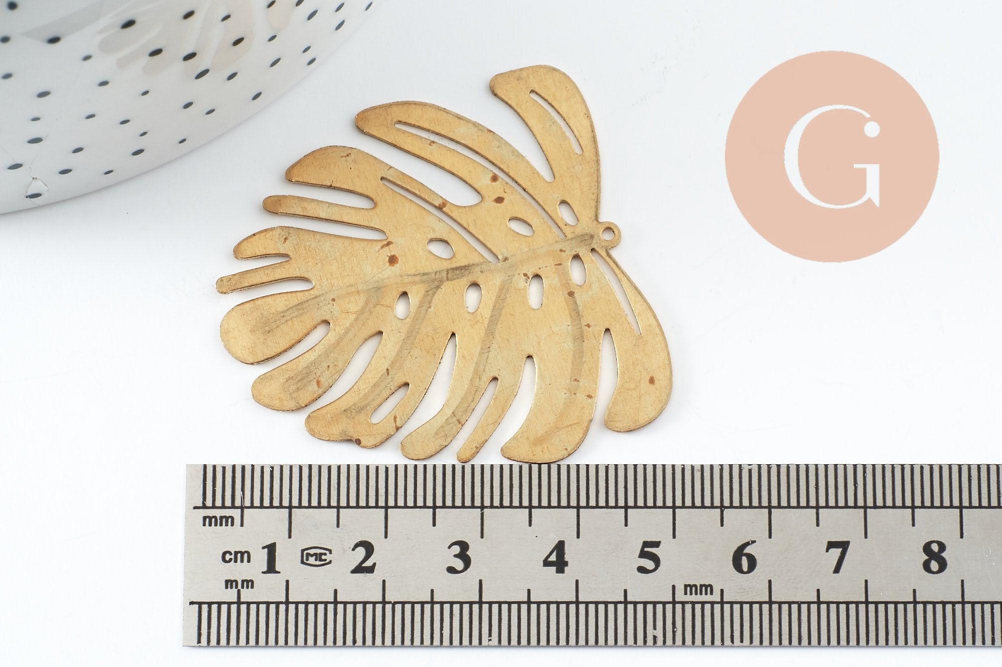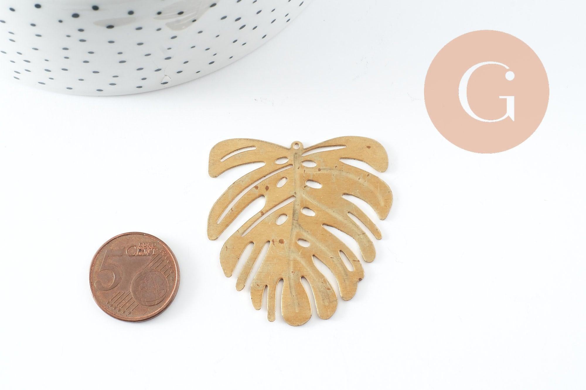 Colgante de hoja de latón, accesorio de joyería, dije de latón crudo, joyería de latón, hoja de monstera de 45 mm, x1 (G0917)