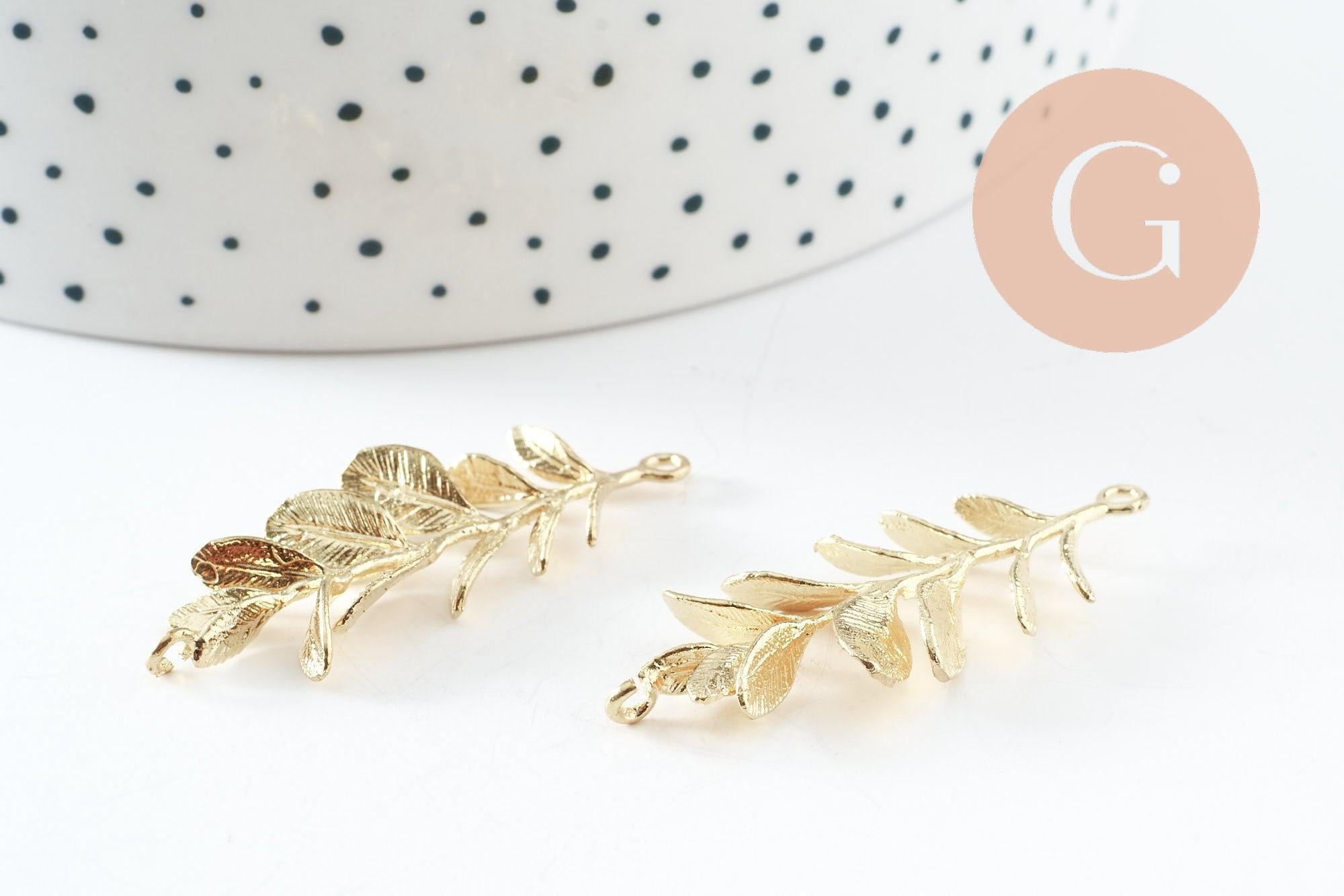 Colgante de hoja de laurel de latón, dije de latón crudo, joyería de hoja de laurel, colgante de latón crudo, 43 mm, x2 (G0432)