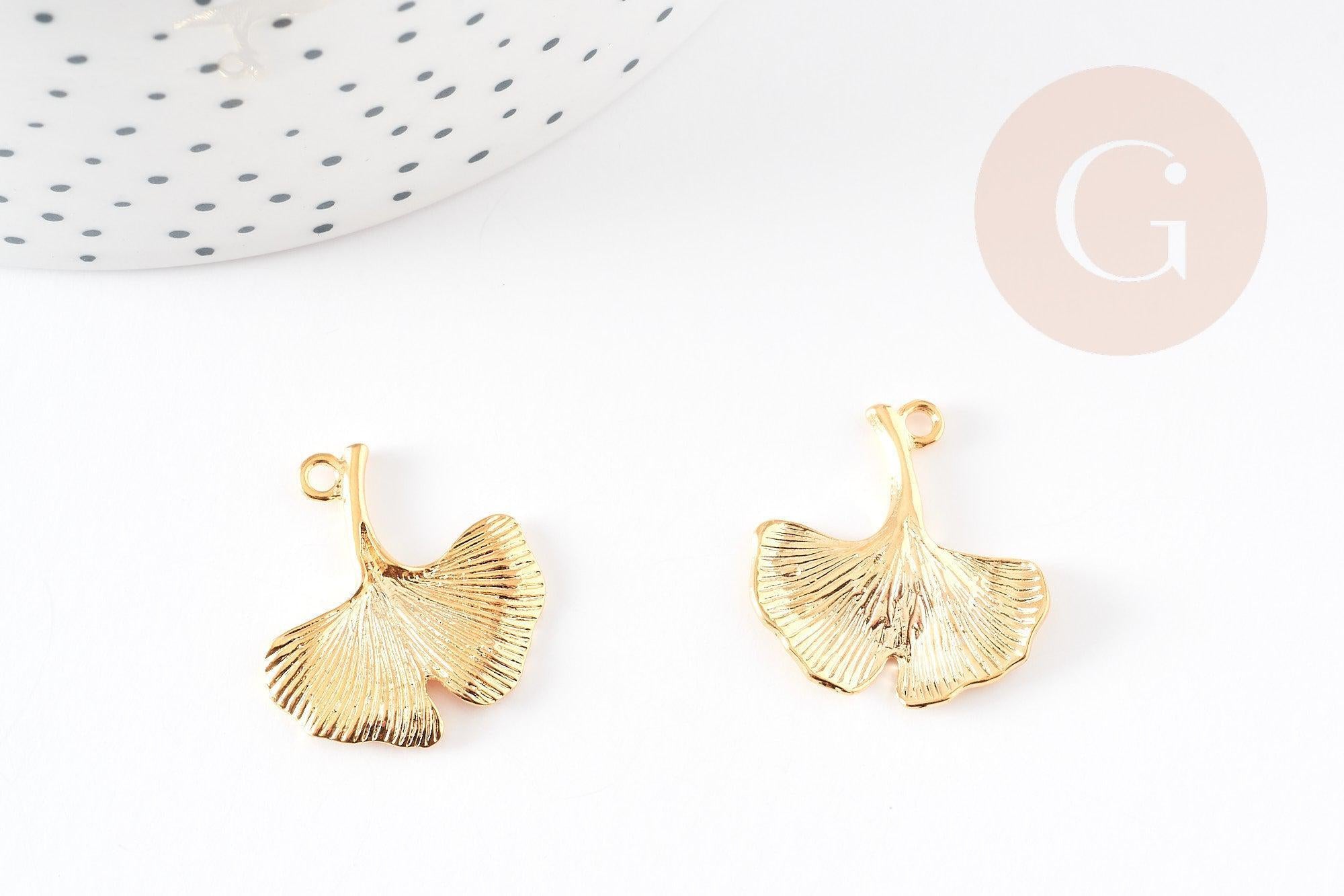Colgante de hoja de gingko de latón dorado de 18 quilates 22 mm, dije de creación de joyería dorada x1 G4848