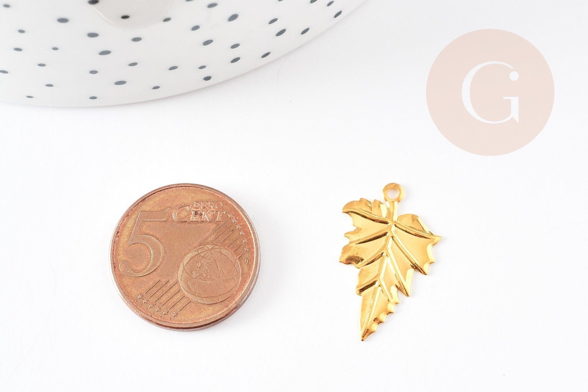 Colgante de hoja de latón bañado en oro de 18 quilates de 23 mm, dije de hoja de árbol de latón, x5 (G3568)