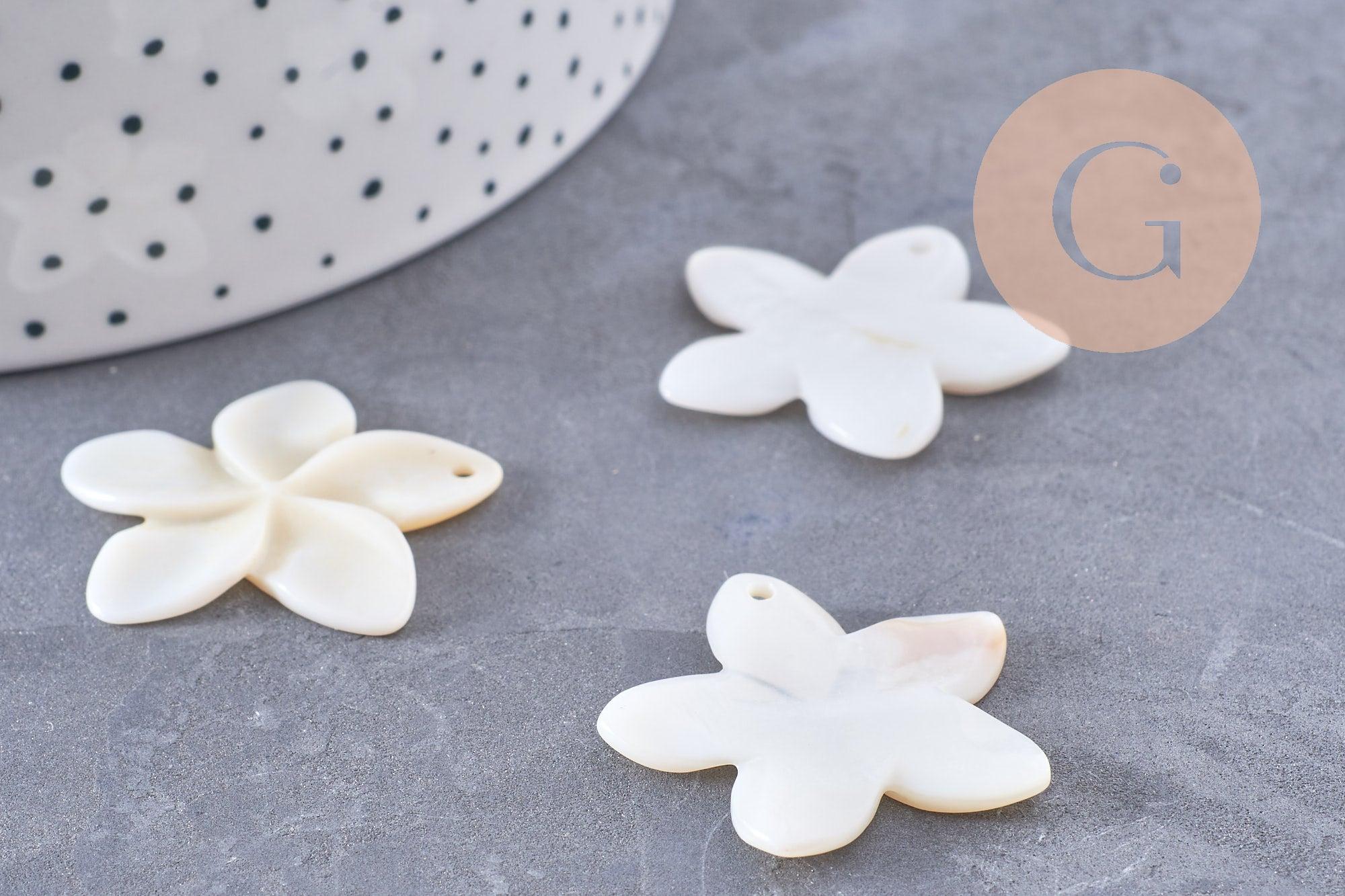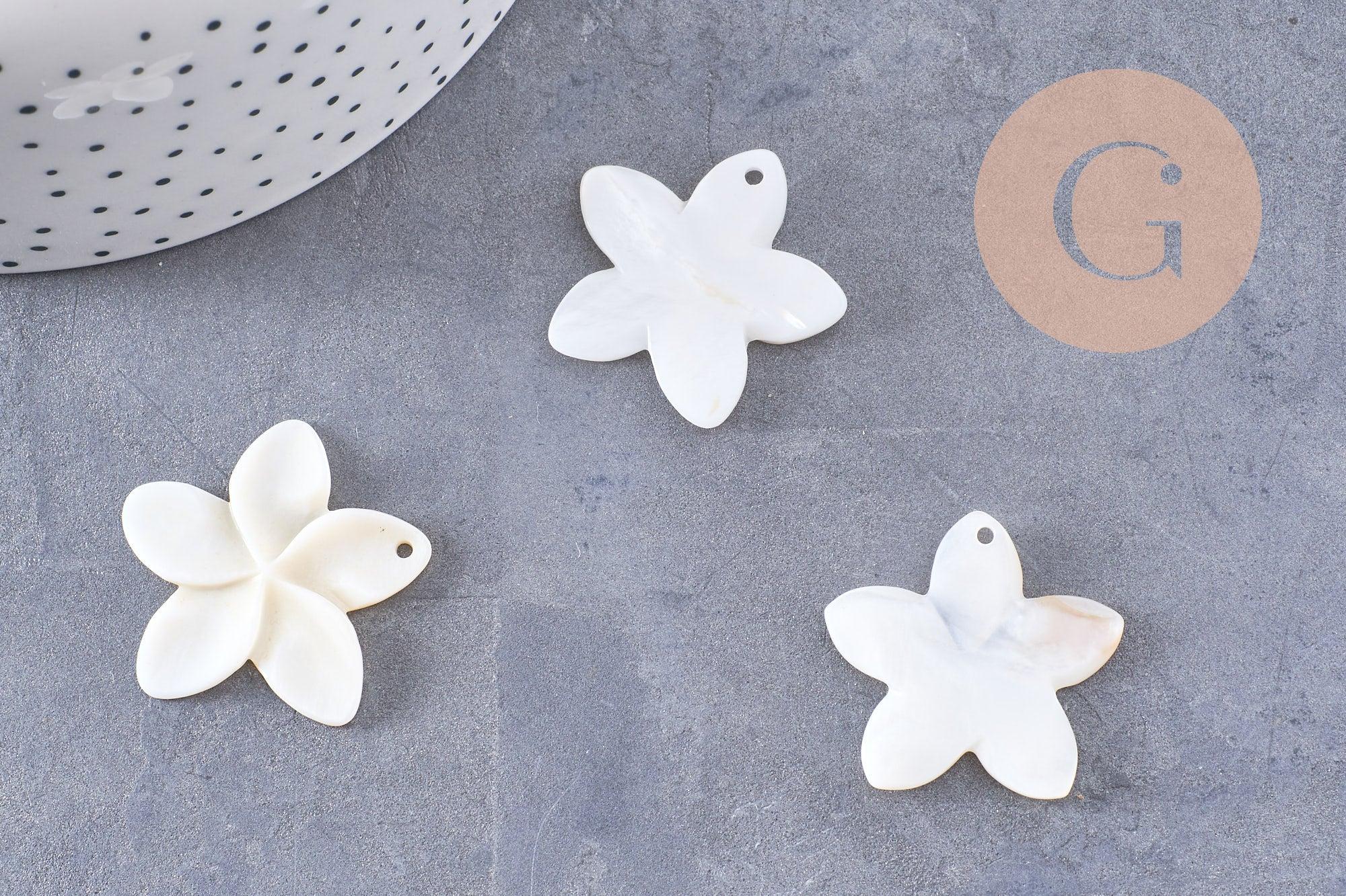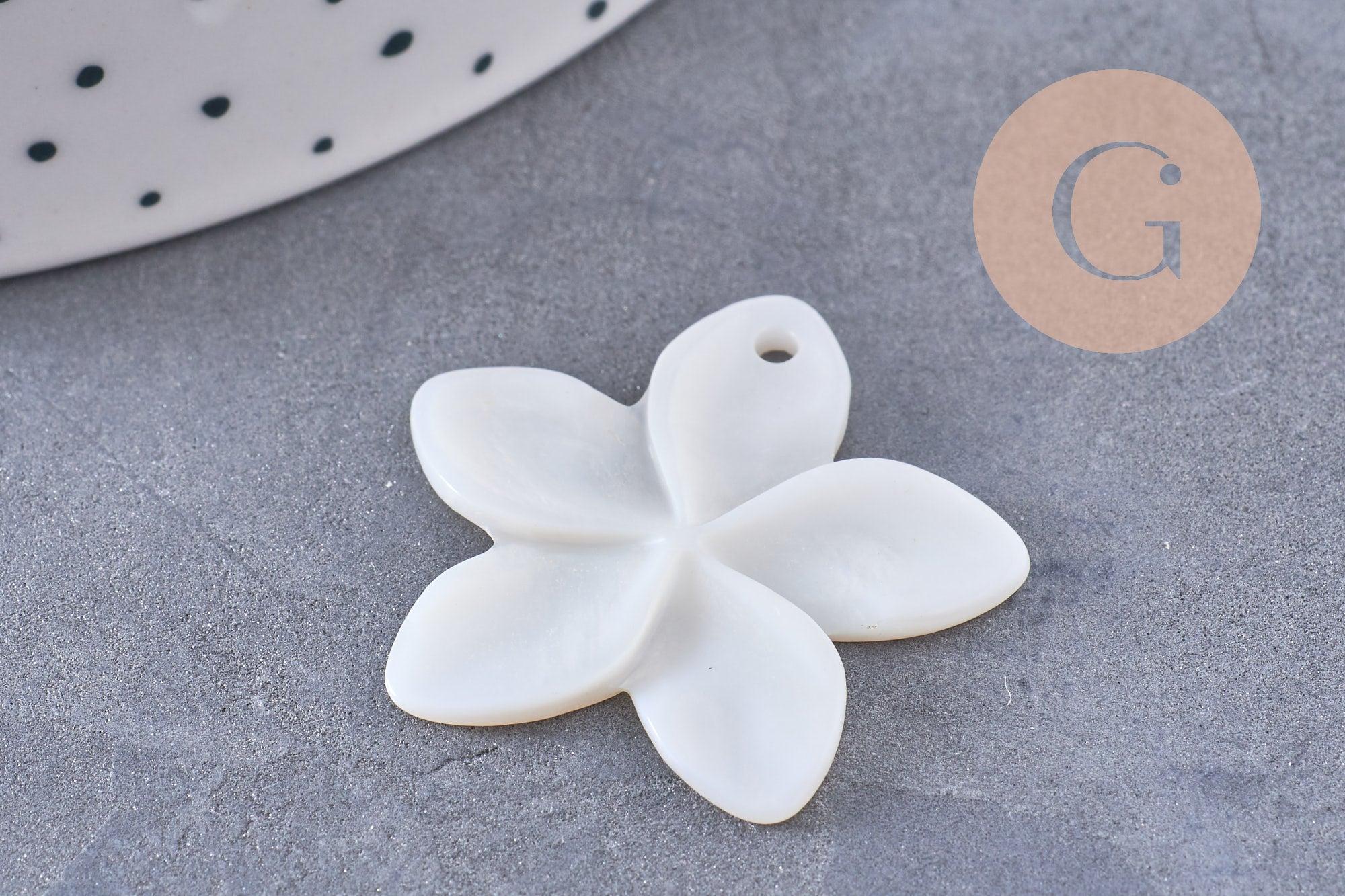 Este colgante de nácar blanco natural , en forma de flor con pétalos , es una pieza refinada ideal para realzar tus creaciones de joyería.