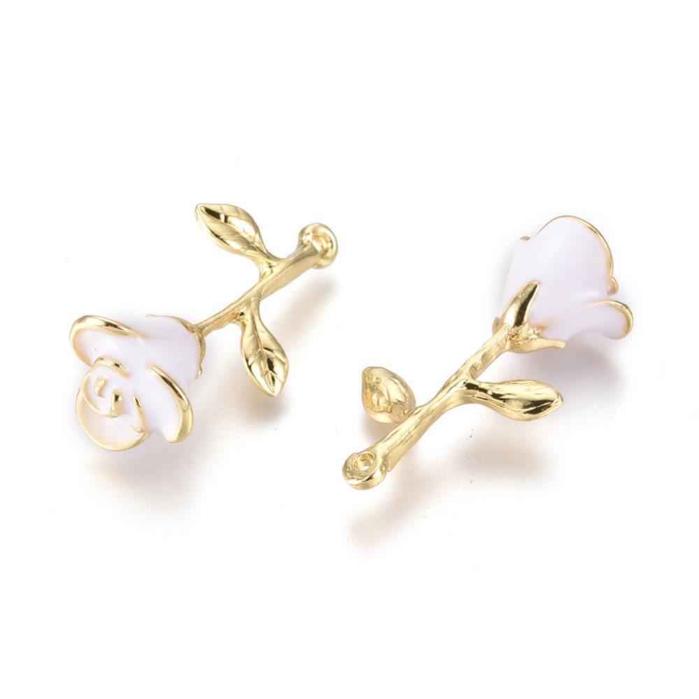 Para realizar magníficos collares, pendientes y pulseras, adopta estas rosas, flores de latón crudo esmaltadas en blanco.