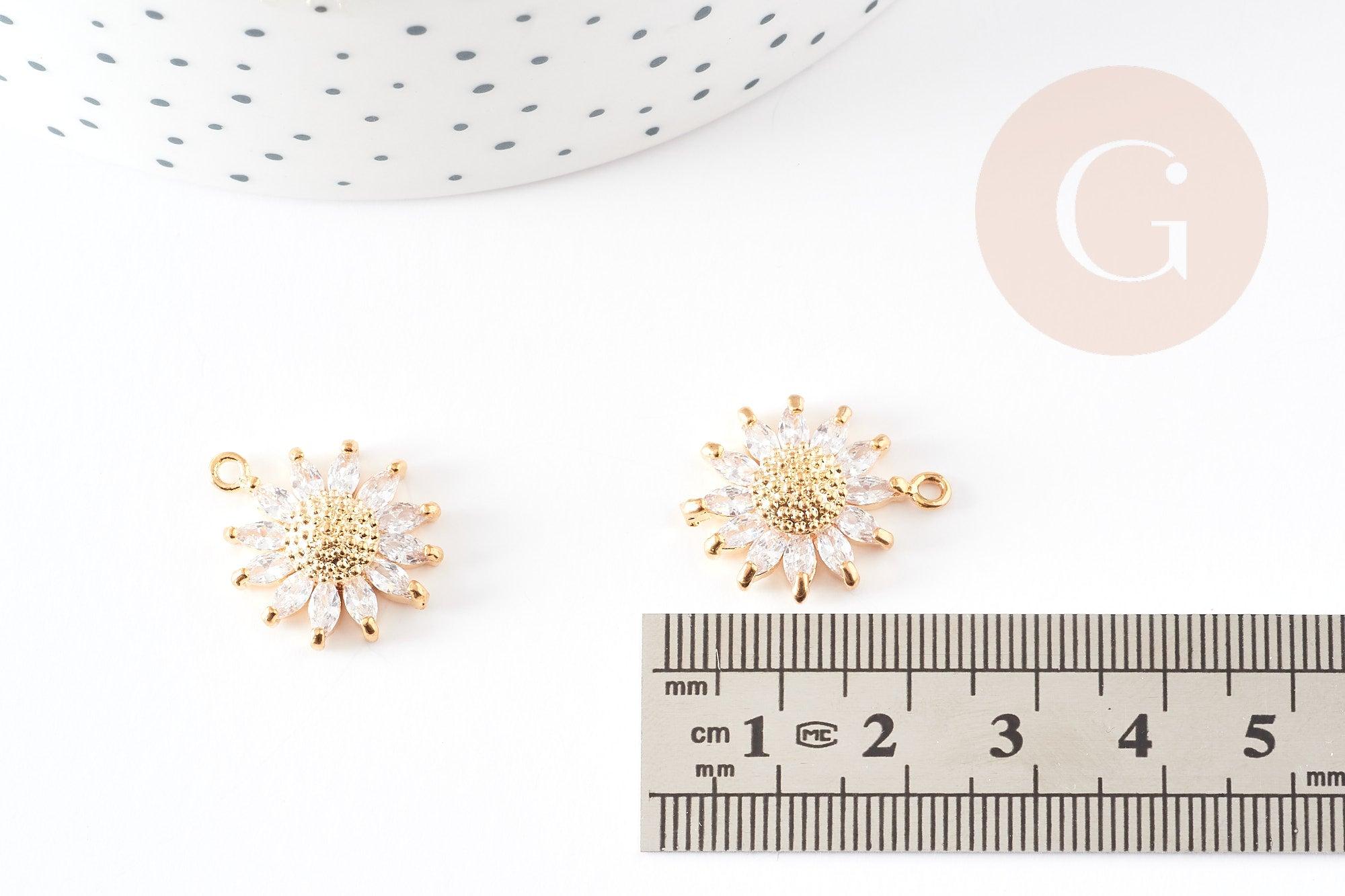 Colgante de flor de girasol de latón dorado de 24K con circonitas de 21 mm, creación de joyas con colgante de circonita dorada, x1 G4124