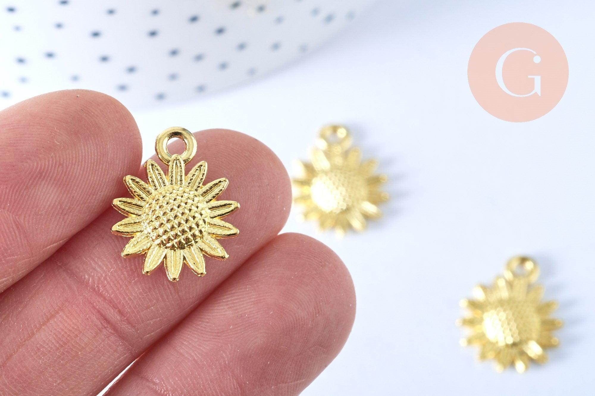 Dale un toque brillante, alegre y floral a tus creaciones con este bonito colgante de girasol . Su delicado diseño de zamac bañado en oro lo convierte en el complemento perfecto para tus joyas veraniegas o florales.