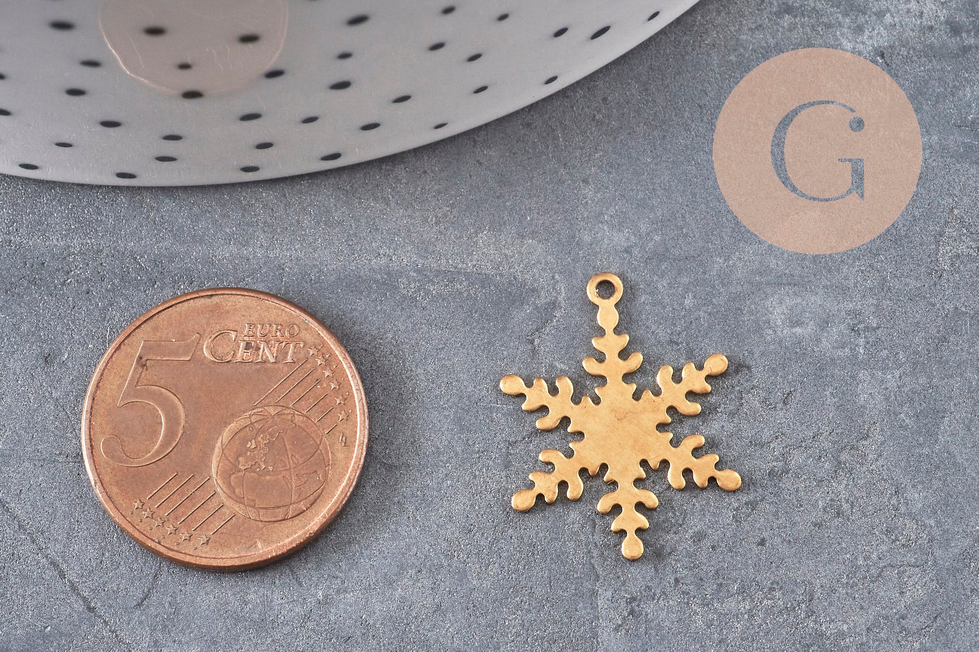 Ce pendentif flocon de neige en laiton brut (21 × 19 mm) séduit par son motif délicat, son esprit hivernal poétique et son fini naturellement vintage. Fabriqué aux États-Unis, il incarne un style à la fois authentique, rétro et intemporel, parfait pour des créations de bijoux DIY pleines de douceur et de caractère.