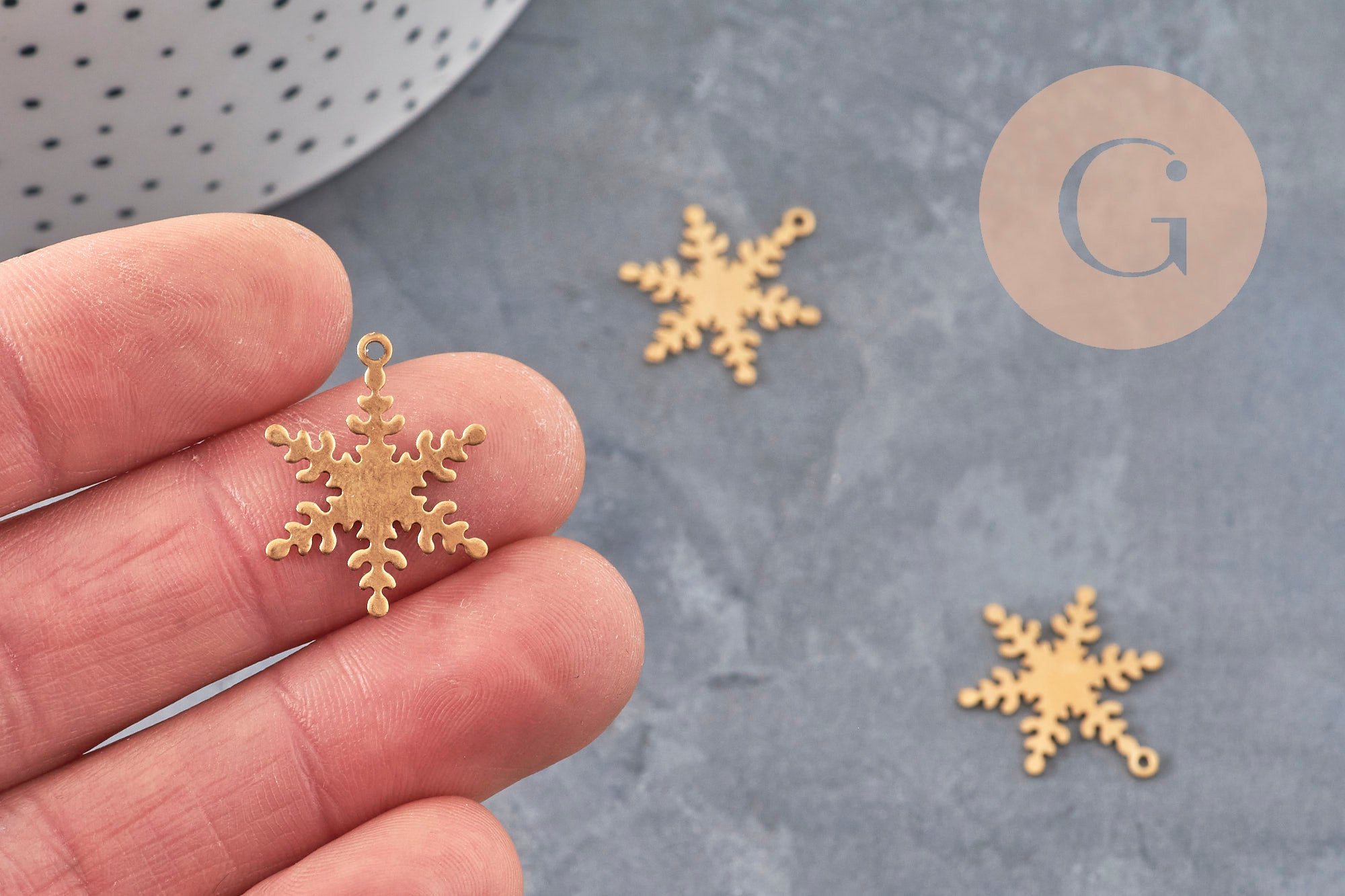 Pendentifs flocon de neige en laiton brut fabriqués aux USA, idéals pour bijoux DIY poétiques et vintage.