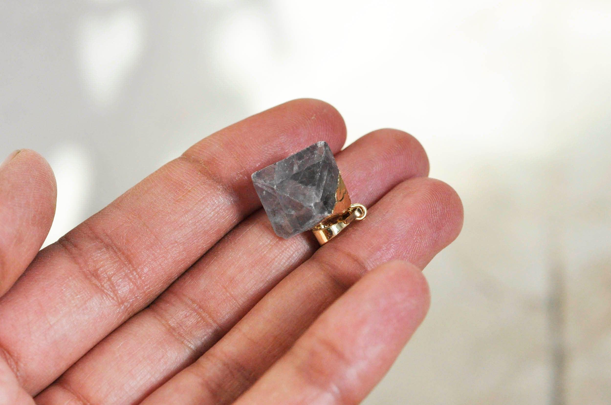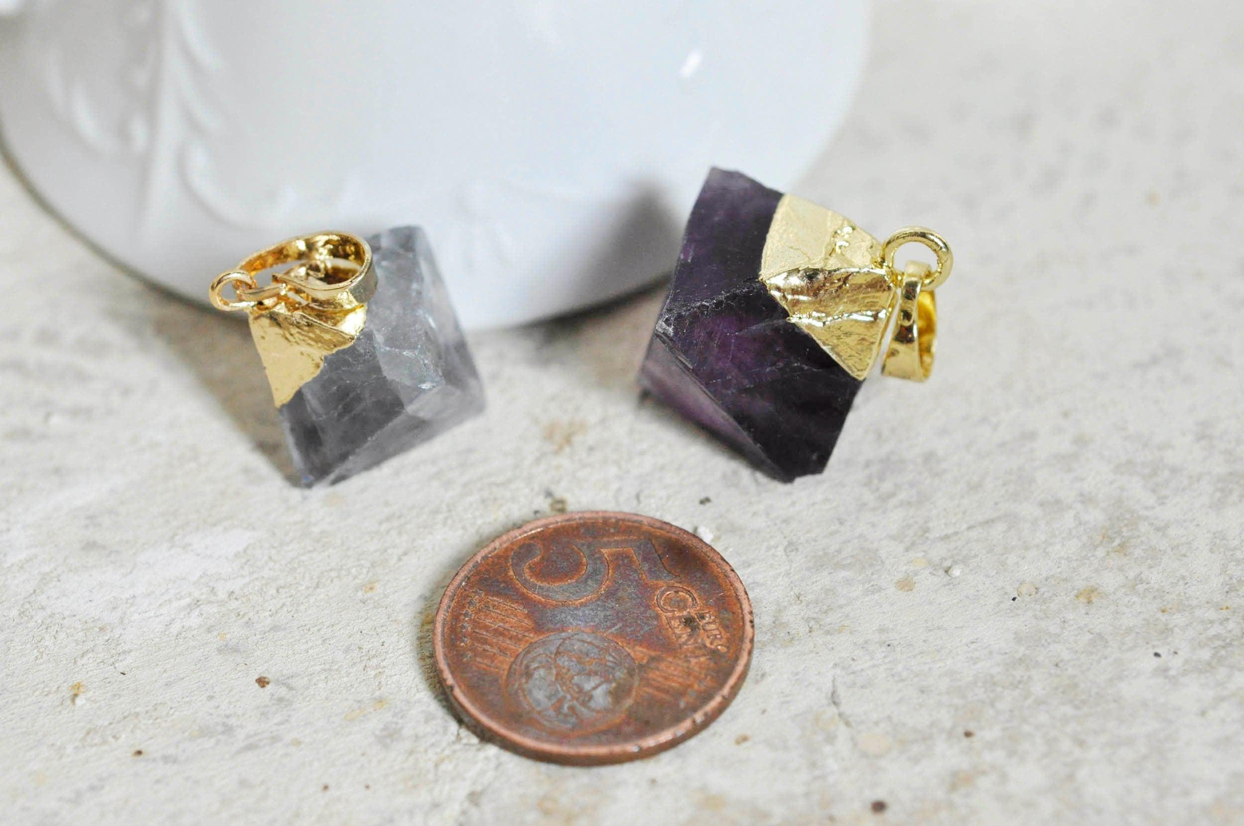 Colgante de fluorita EP, fluorita natural, piedra en bruto, creación de joyas, colgante dorado, creación de joyas, piedra natural, x1, G1516
