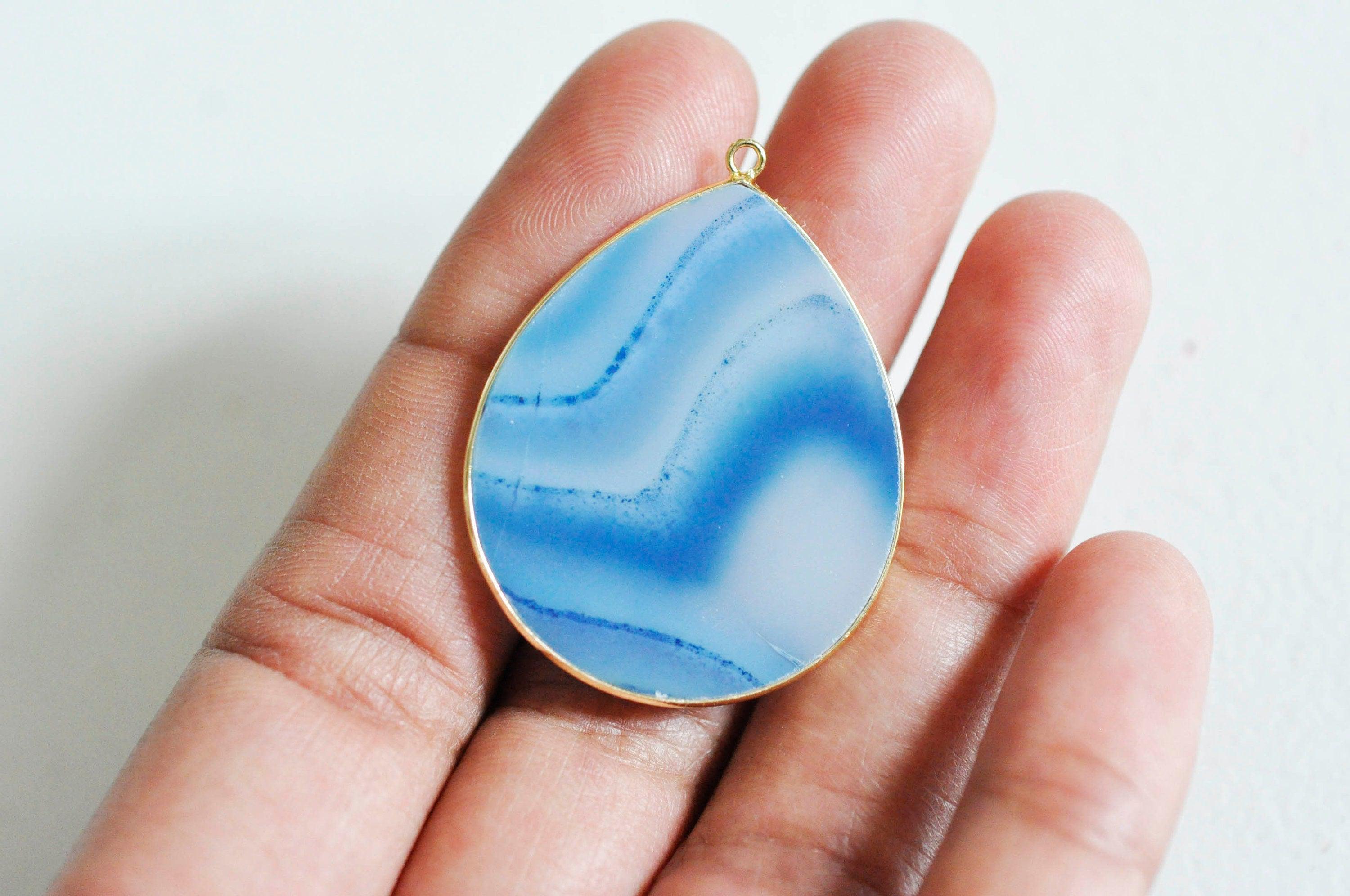 Colgante gota de ágata azul rayada, colgante de joyería, colgante de piedra, piedra natural, ágata natural, creación de joyas, 41mm Déjese seducir por este colgante en forma de gota de ágata natural rayada, para crear joyas bohemias chic muy de...