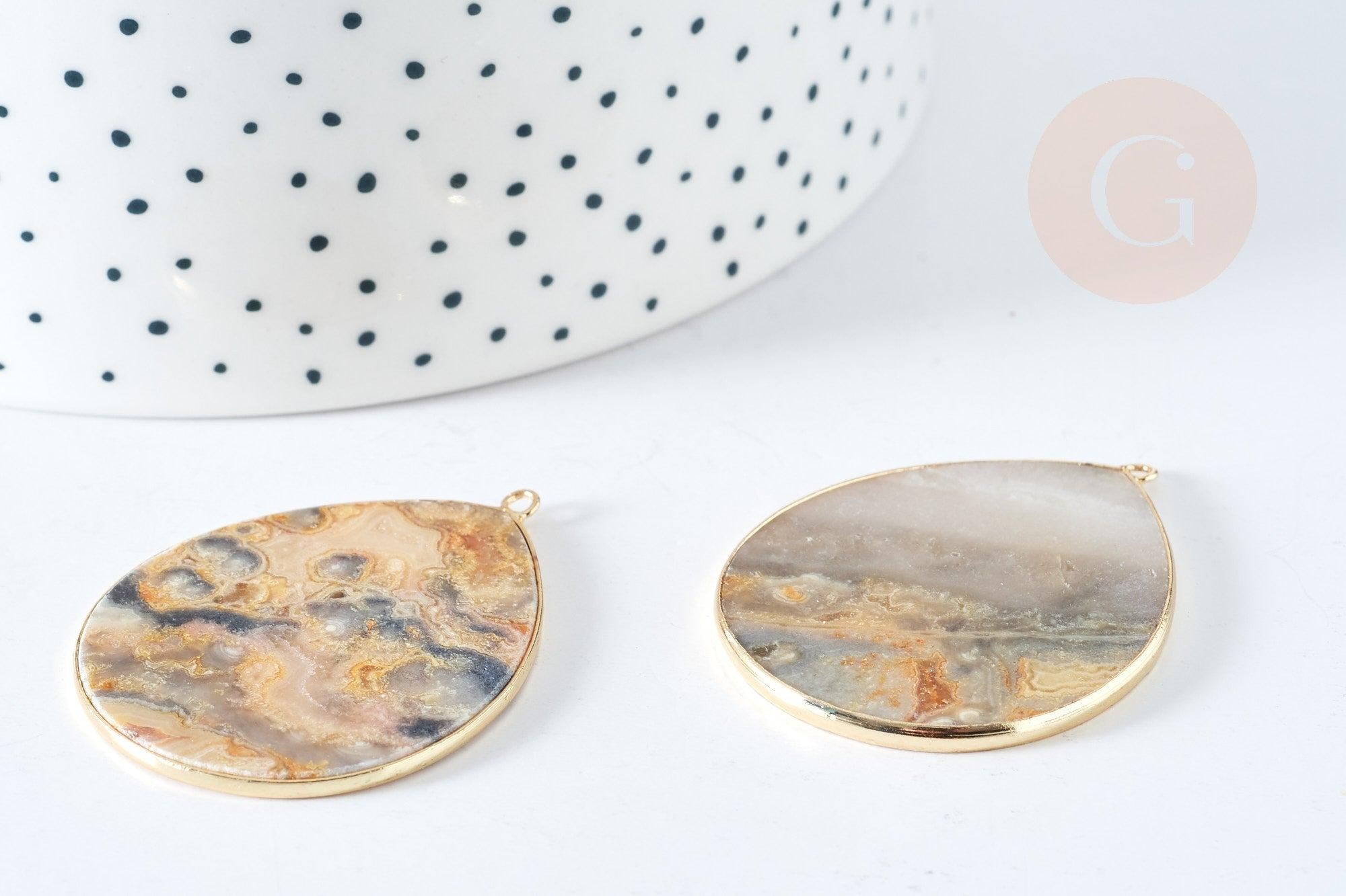 Pendentif goutte agate folle naturelle 56-62mm, x1 (G8371)