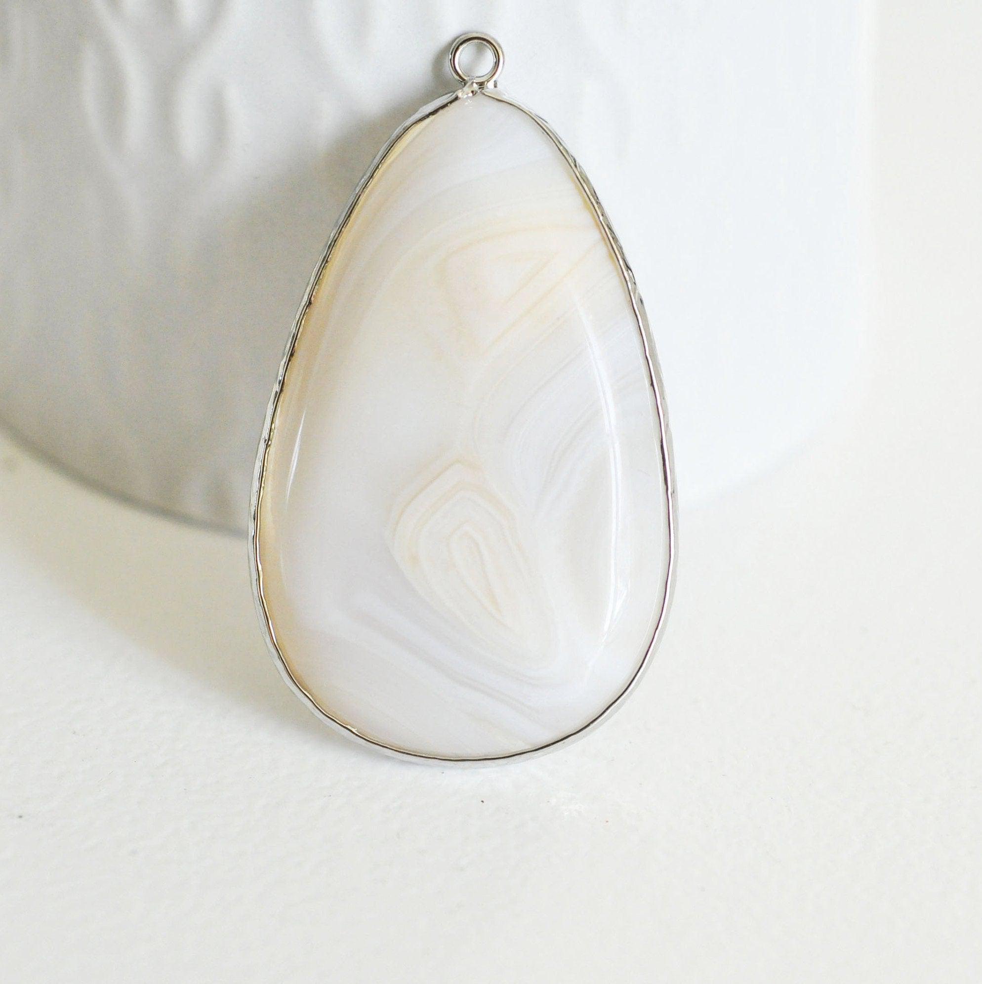 EP Colgante gota de ágata gris soporte de plata, colgante de joyería, colgante de ágata, colgante de piedra, ágata natural, ágata gris, 53mm, G3006