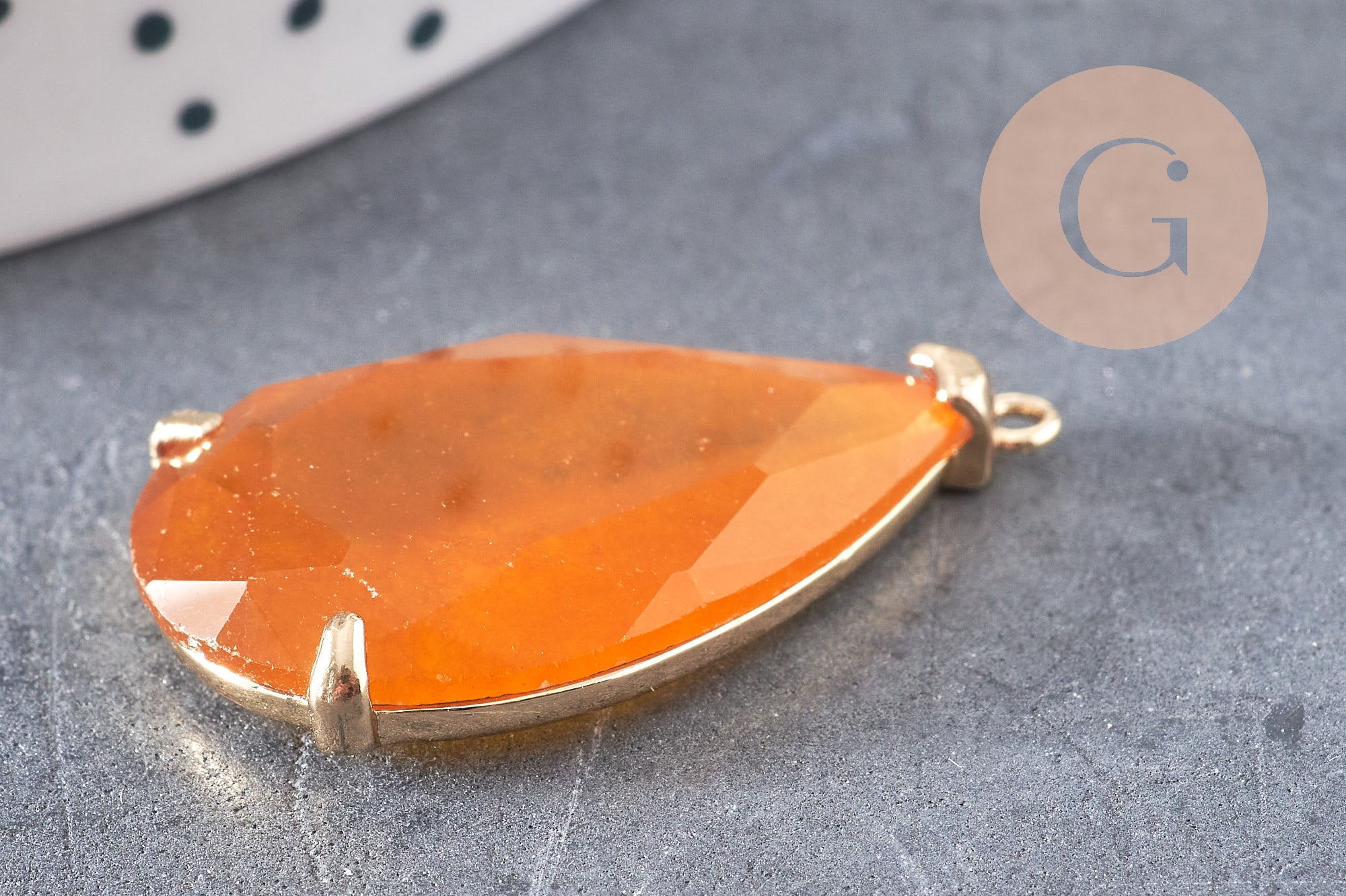 Colgante gota de ágata amarilla con soporte dorado, colgante de piedra, ágata natural, ágata roja, creación de joyas, piedra natural, 32mm, x1 G3547