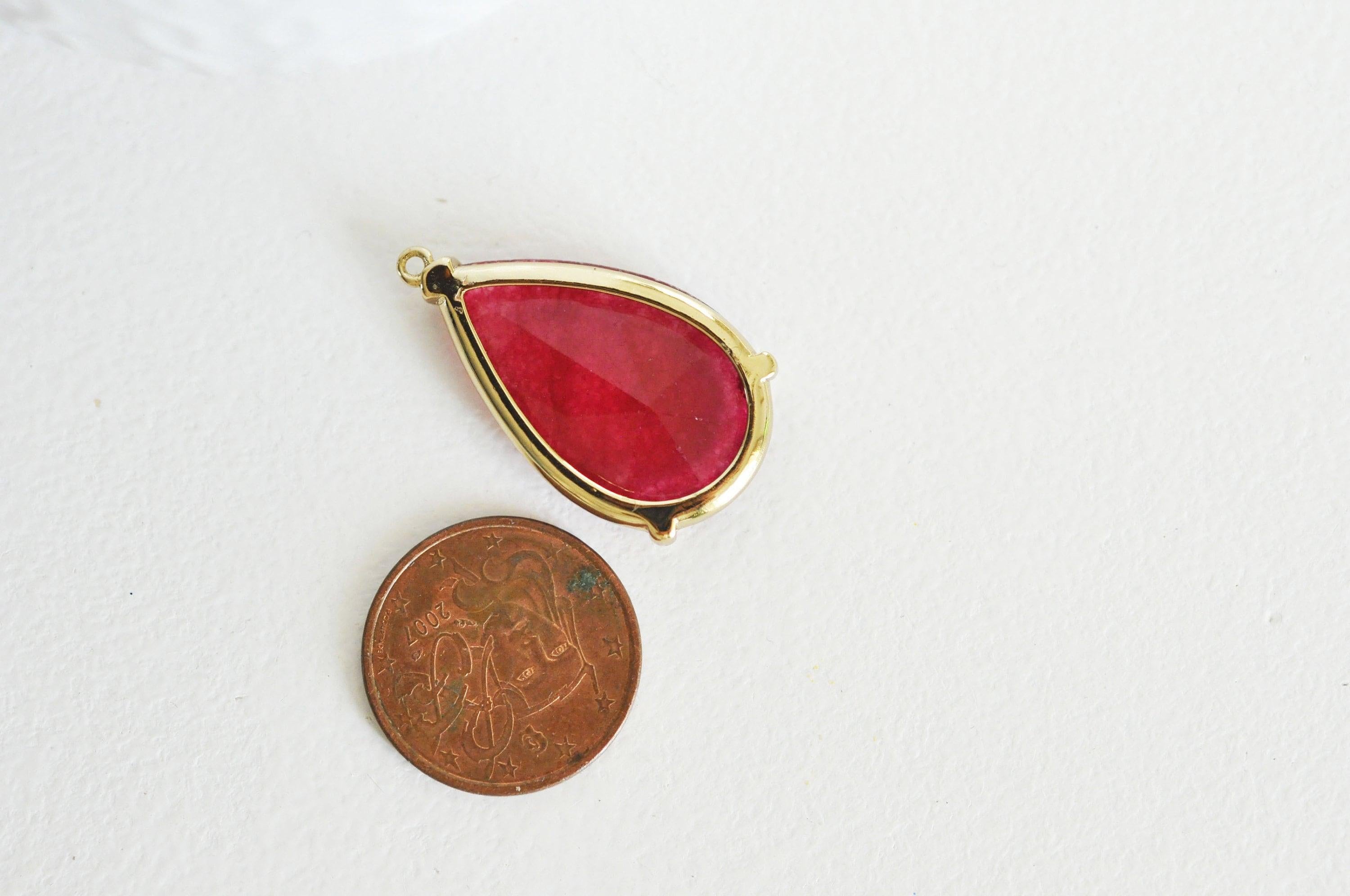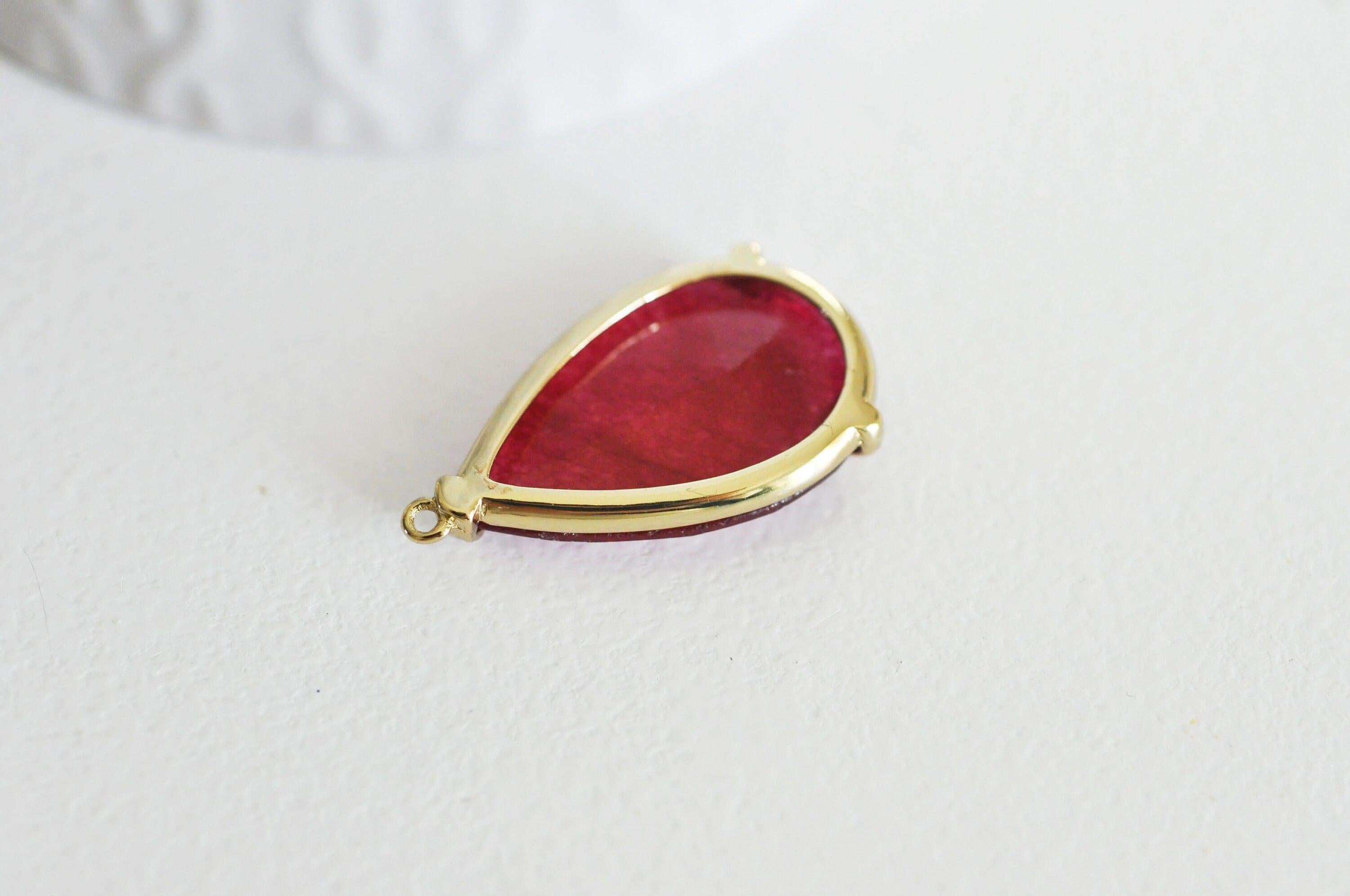 Sublime colgante de gota en ágata roja natural y montado sobre un asa de latón bañado en oro .