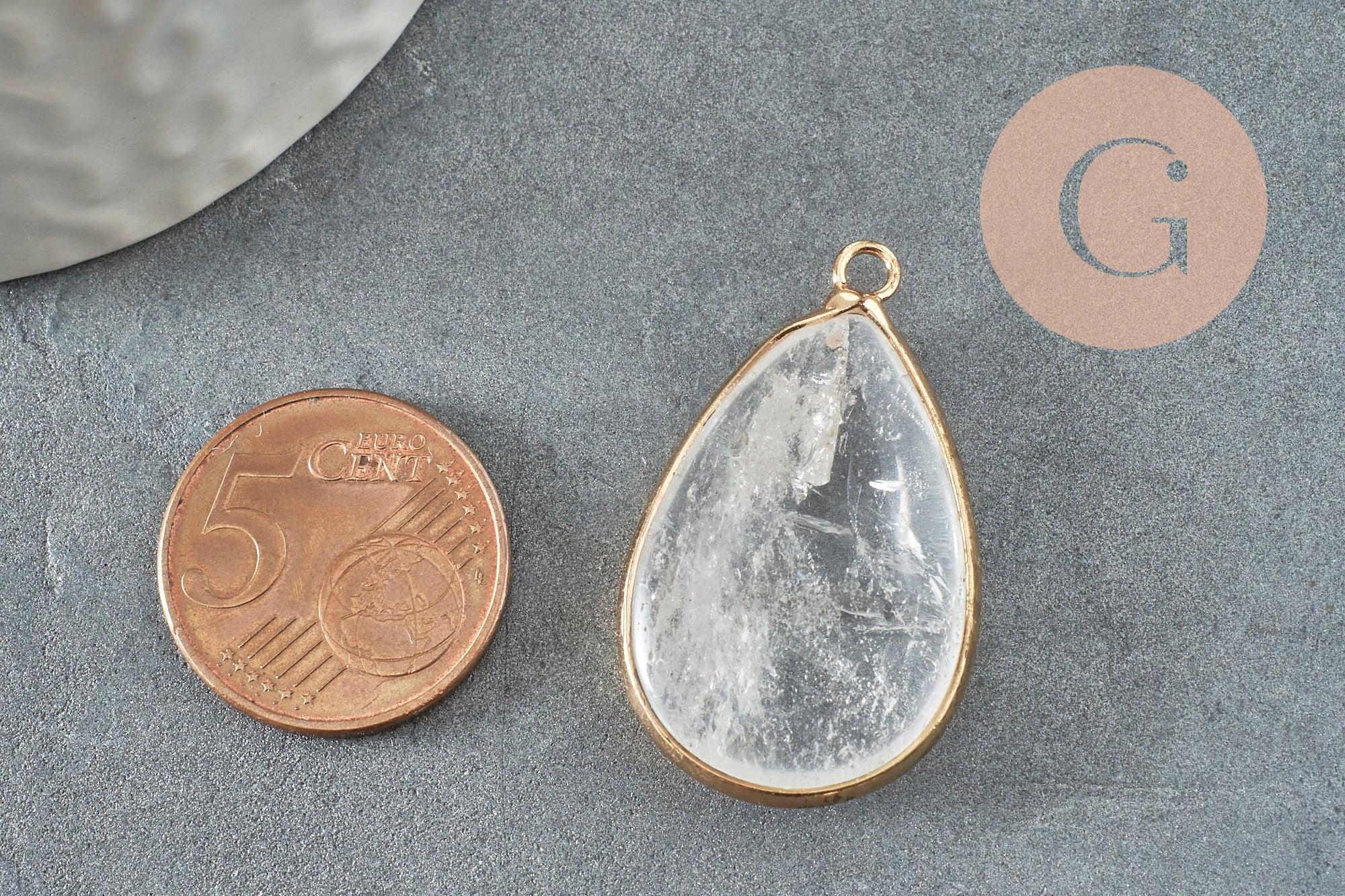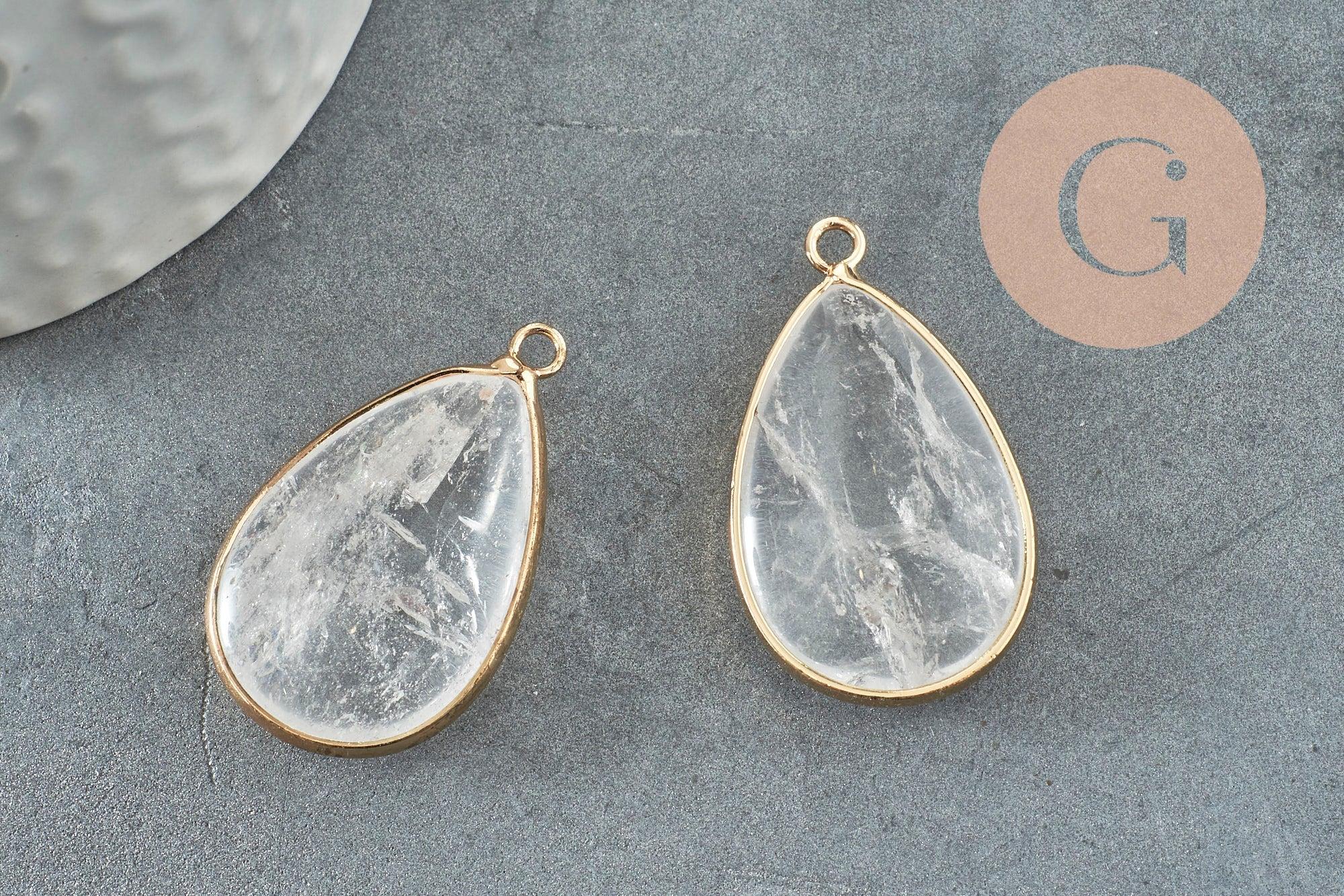 Colgante gota cristal dorado 35mm, colgante cristal transparente, colgante piedra, cristal natural, colgante collar, x1 G0489