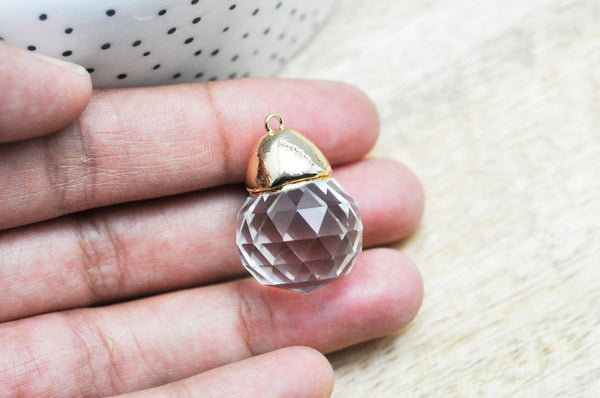 Colgante gota dorada de cristal transparente facetado, colgante de cristal, colgante dorado, creación de joyas, 30mm, x1 G4651