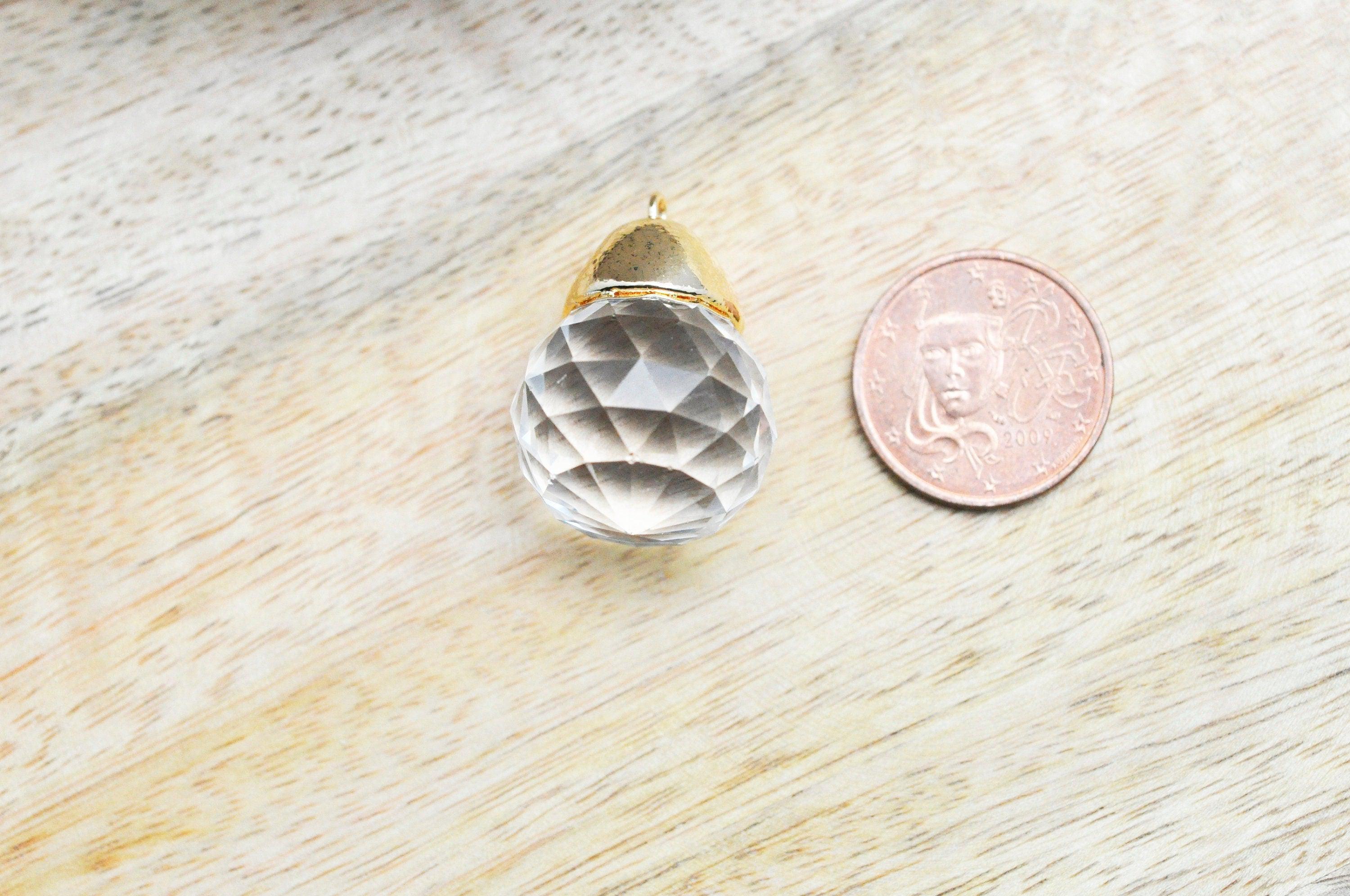 Déjate seducir por este bonito colgante "manzana de pan" de cristal transparente, rodeado de latón bañado en oro.