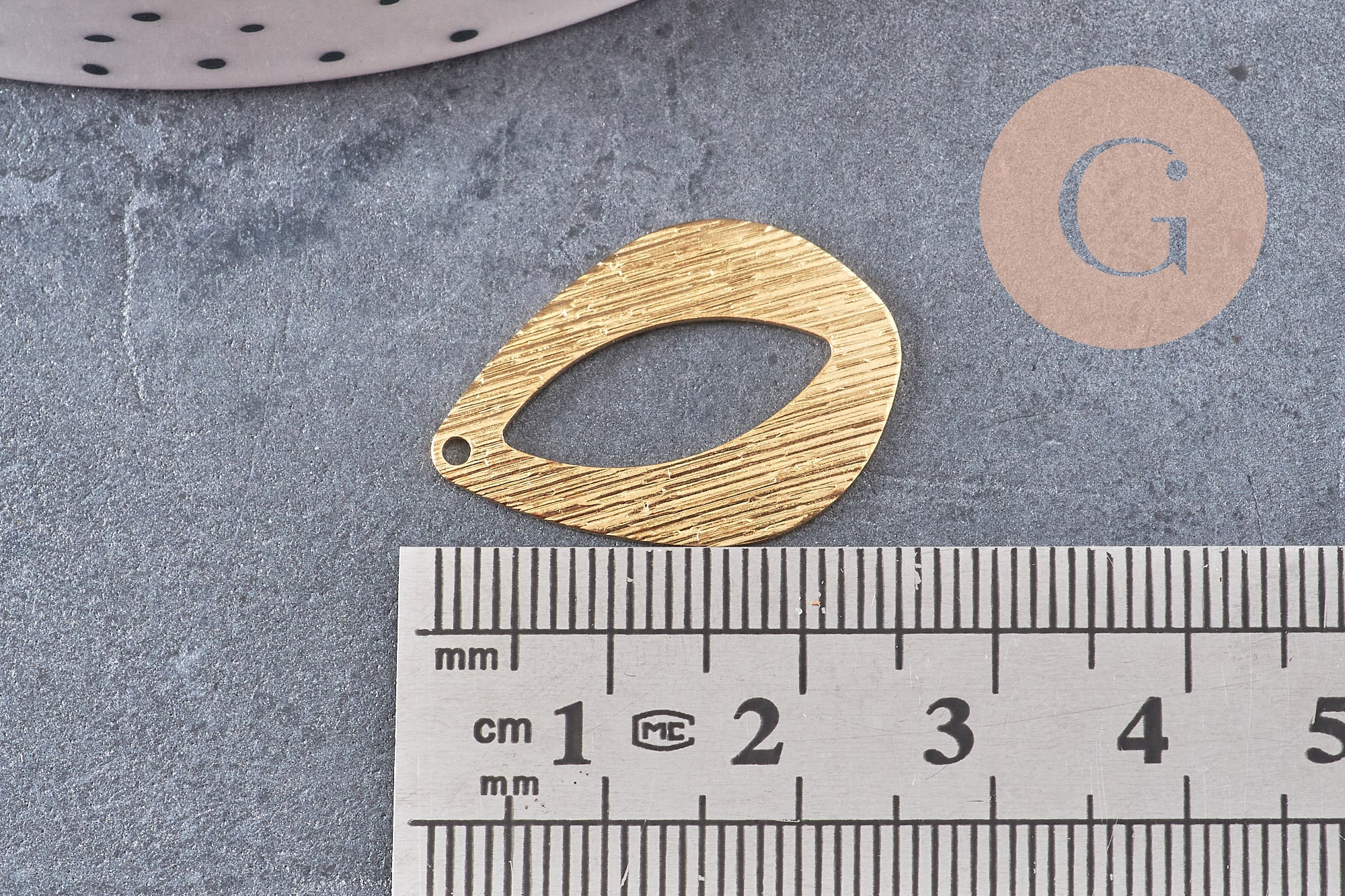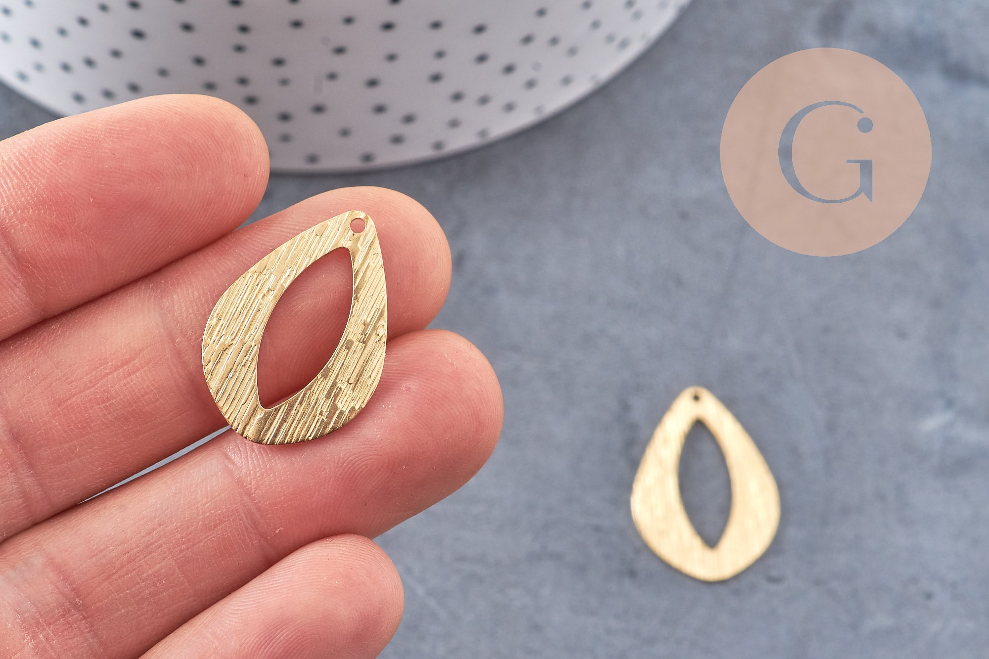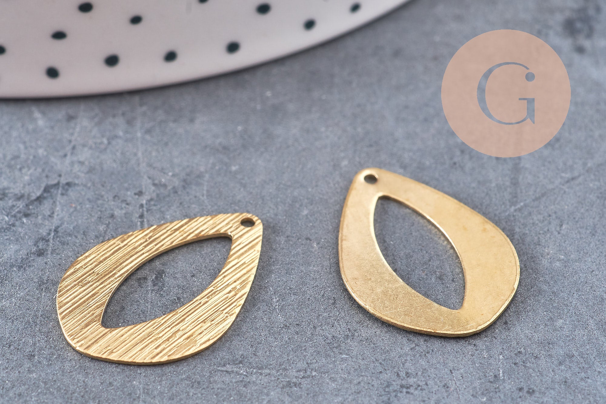 Pendentif goutte évidée laiton brut brossé 25.5mm, x2 (G10931)