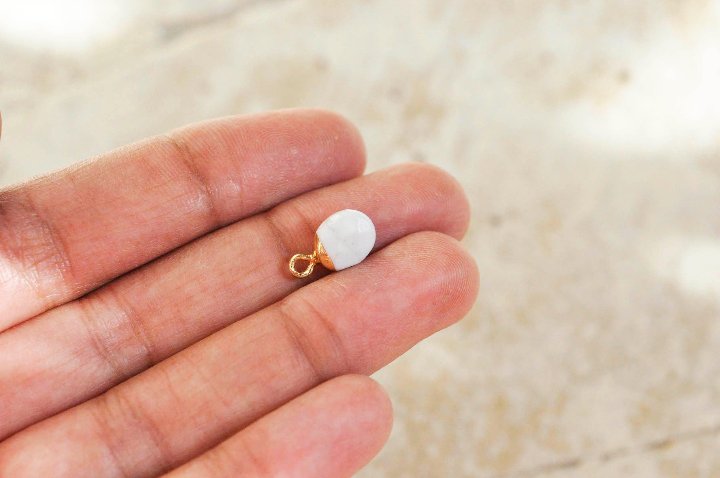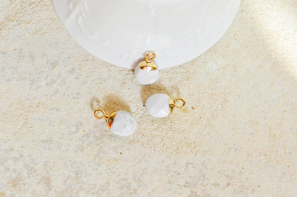 Colgante de howlita blanca, colgante de joyería, colgante de piedra, howlita natural, colgante de howlita, 14 mm, x 2, (G0080)