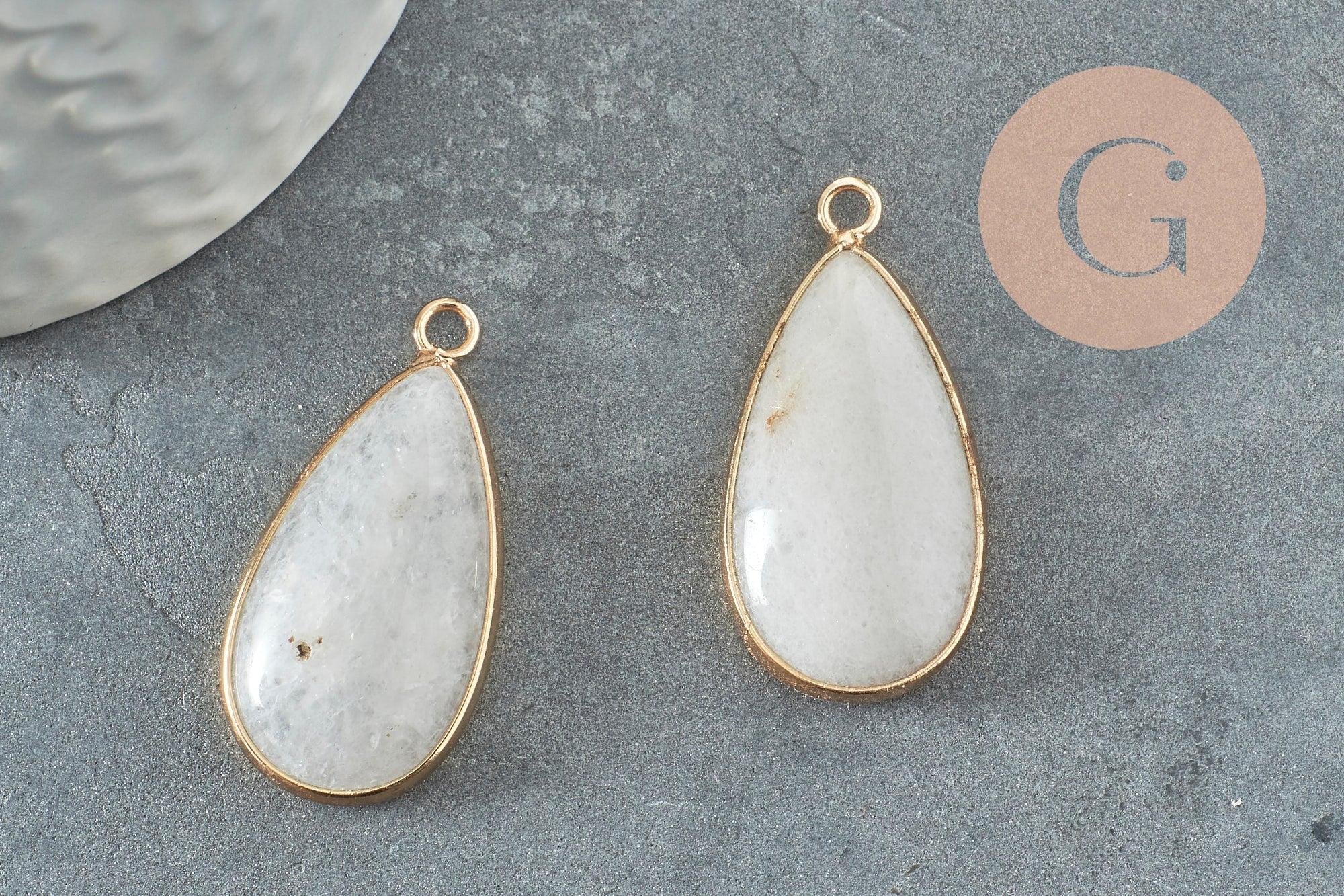 Sublime colgante en forma de gota, elaborado en jade blanco natural y montado sobre un elegante asa de latón bañado en oro .