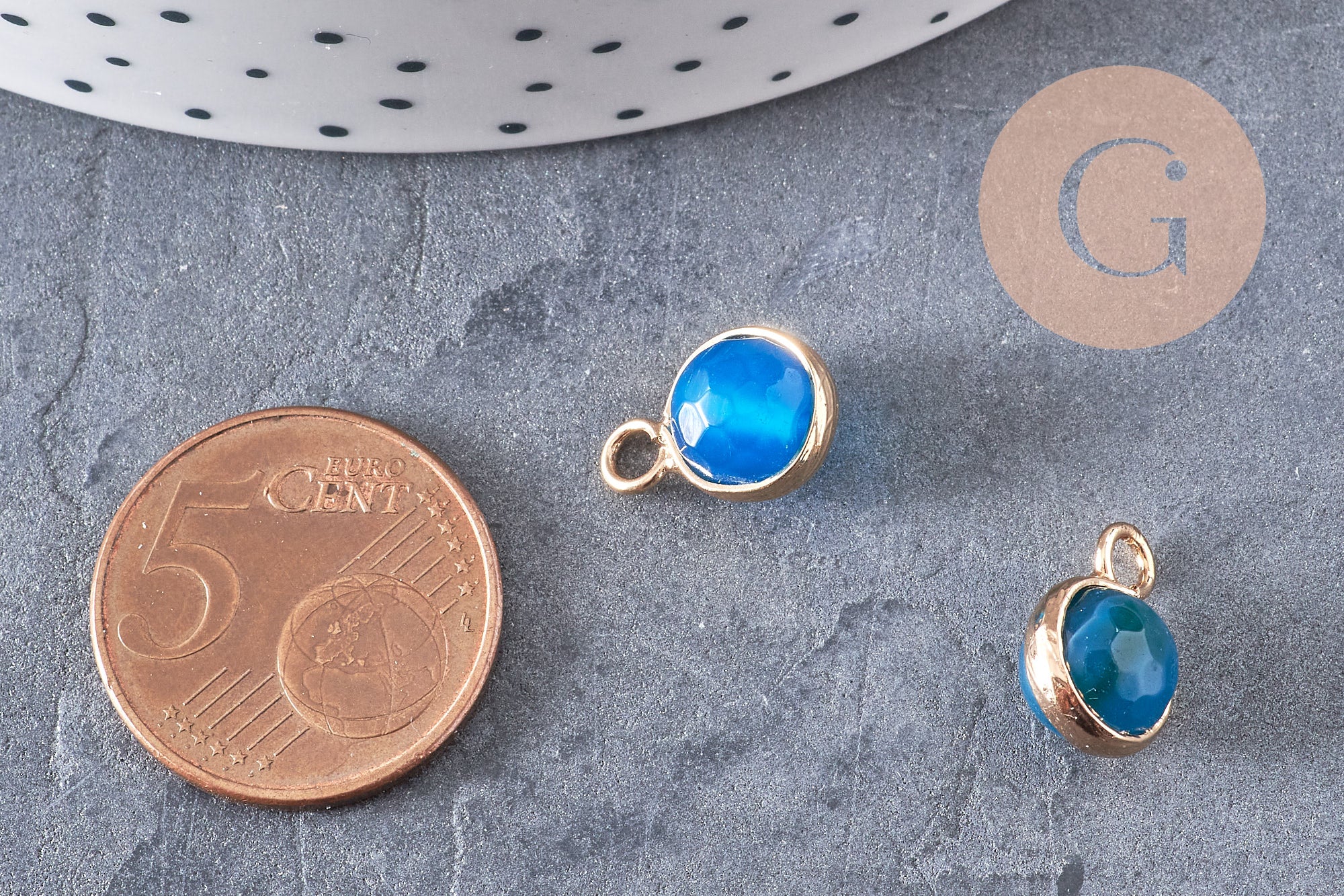 Colgante de jade azul dorado facetado, colgante de piedra, joyería de piedra, colgante de piedra, jade azul natural, colgante de jade, 13-16 mm, juego de 2