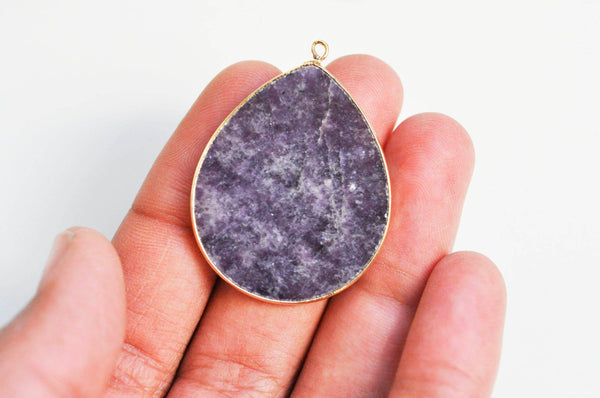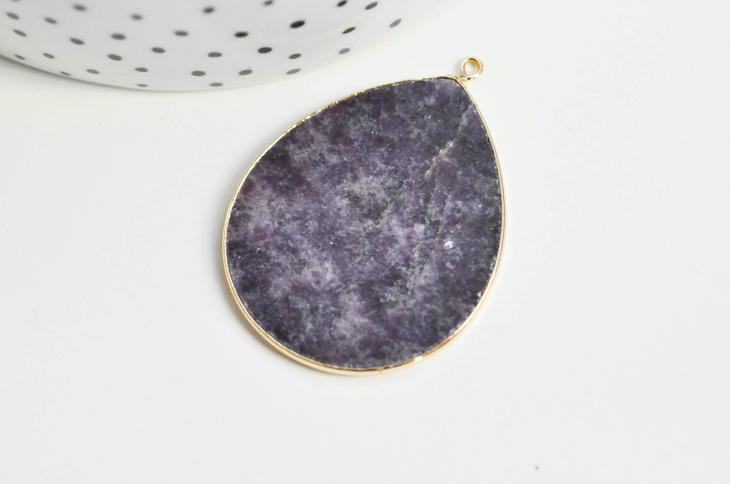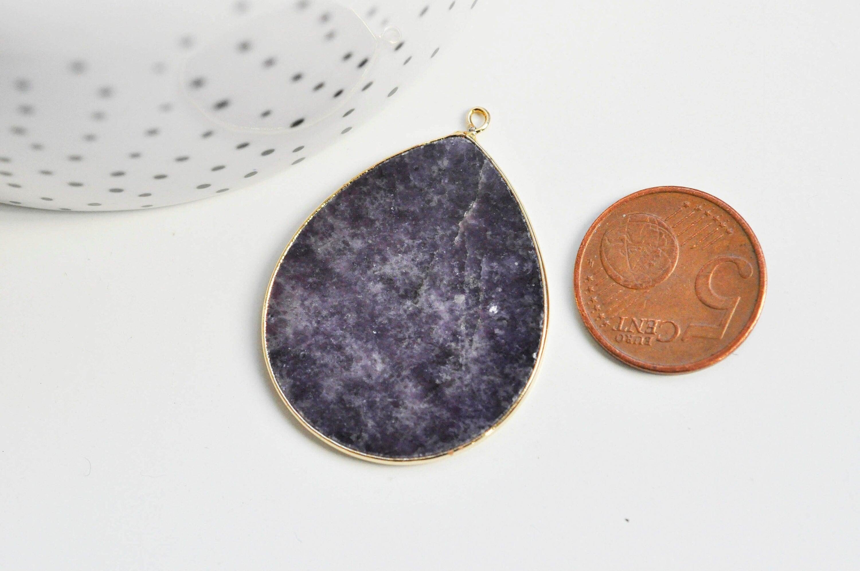 Colgante en jade natural lila y bruto sobre soporte de hierro dorado, para realizar collares, pendientes o sautoirs de tendencia.