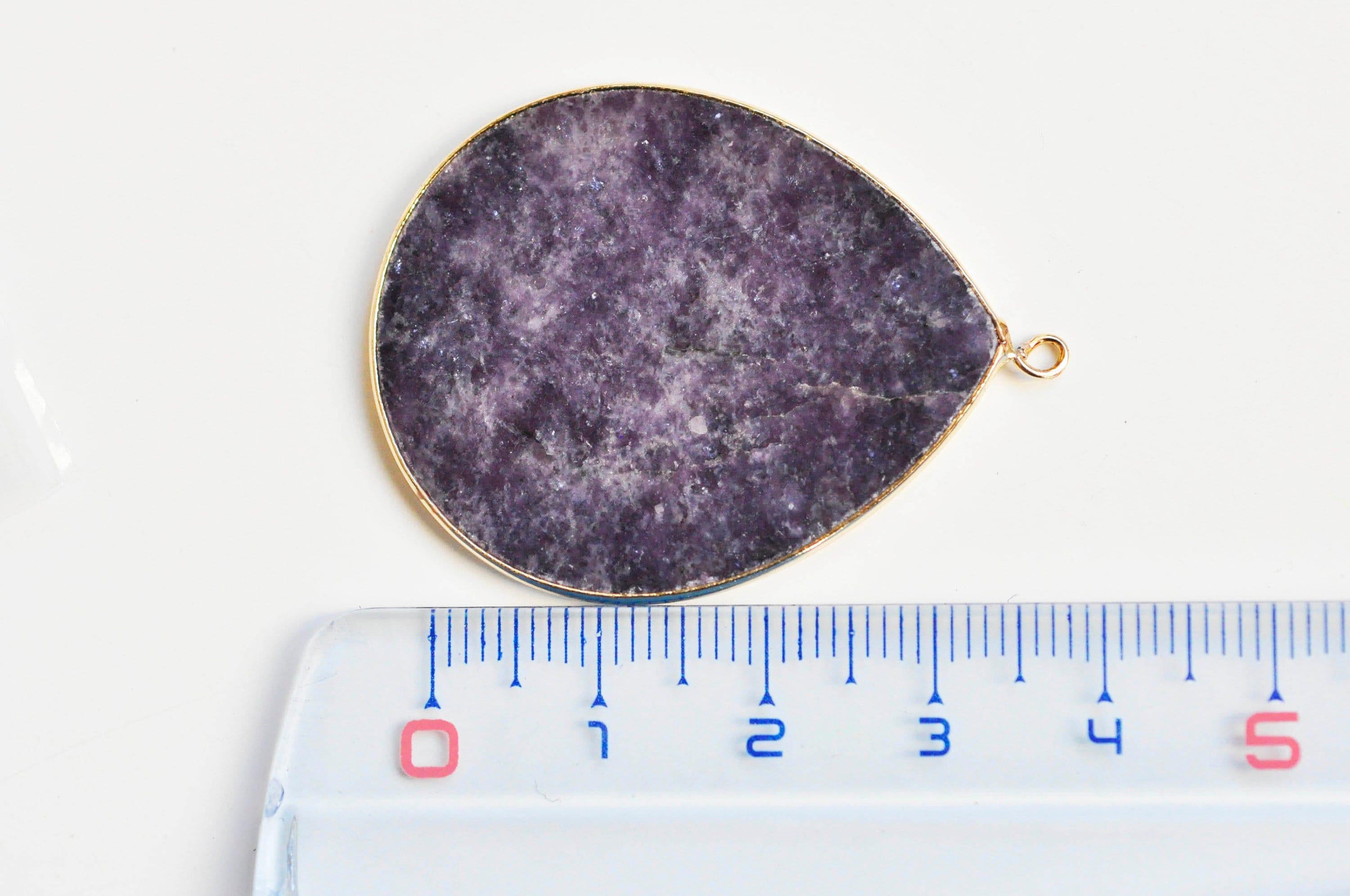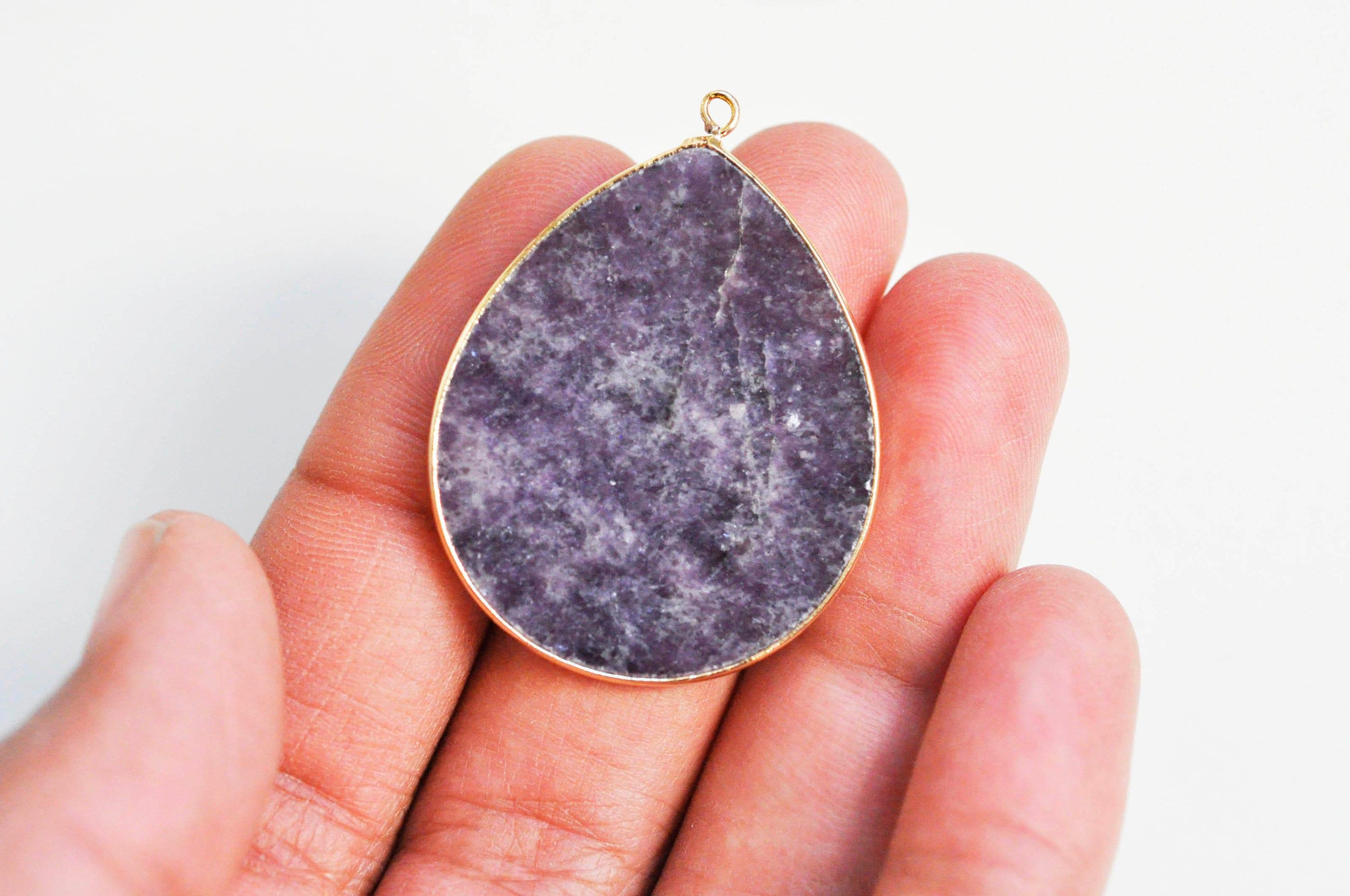 Colgante de gota de jade lila, colgante de piedra, soporte de oro, creación de joyas de piedra natural, piedra natural, 17-19 mm