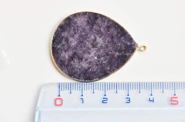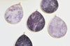 Colgante gota de jade lila, colgante de piedra, soporte dorado, piedra natural, 17-19mm, x1 G3718